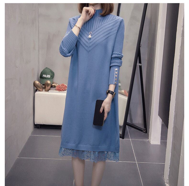 ワンピース レディース ニットワンピース プルオーバー 膝丈 ロング 長袖 レース ハイネック かわいい 大人可愛い きれいめ おしゃれ お洒落 上品 キュート ガーリー 主役級 存在感 フェミニン 無地 秋 冬 お呼ばれ 20代 30代 OL 学生 通学 デート お出かけ 女子会 休日 着回し 普段使い 韓国 韓国系 送料無料 ファッション コーデ スタイル 防寒 モテ 美脚 脚長 プレゼント ギフト トレンド 流行 インスタ映え L XL 2XL 3XL 4XL ブラウン ブルー ブラック
