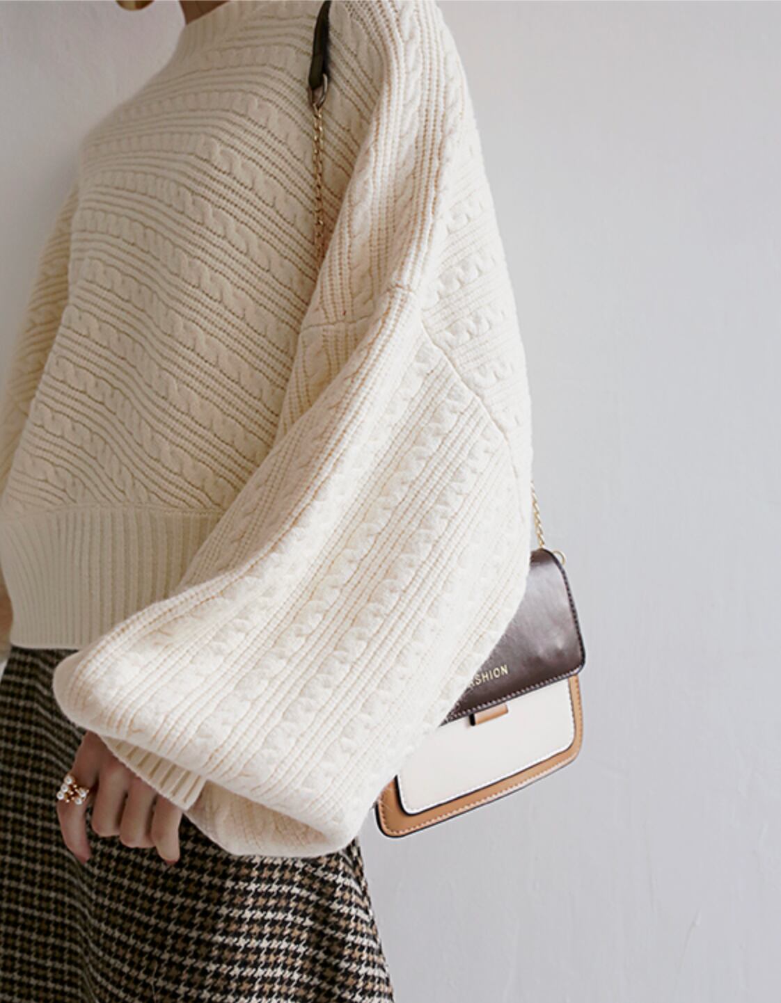ゆったりとしたシルエットとたっぷりとしたボリューム袖が可愛いニットセーター