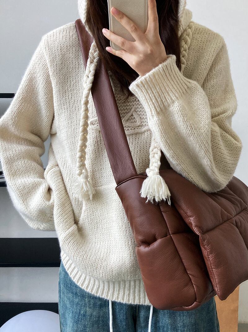 リラックス感のあるフード付きニットがとっても可愛い♡