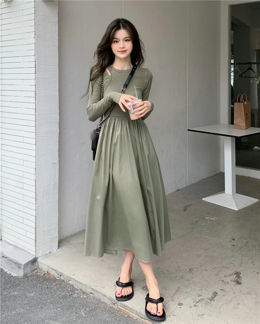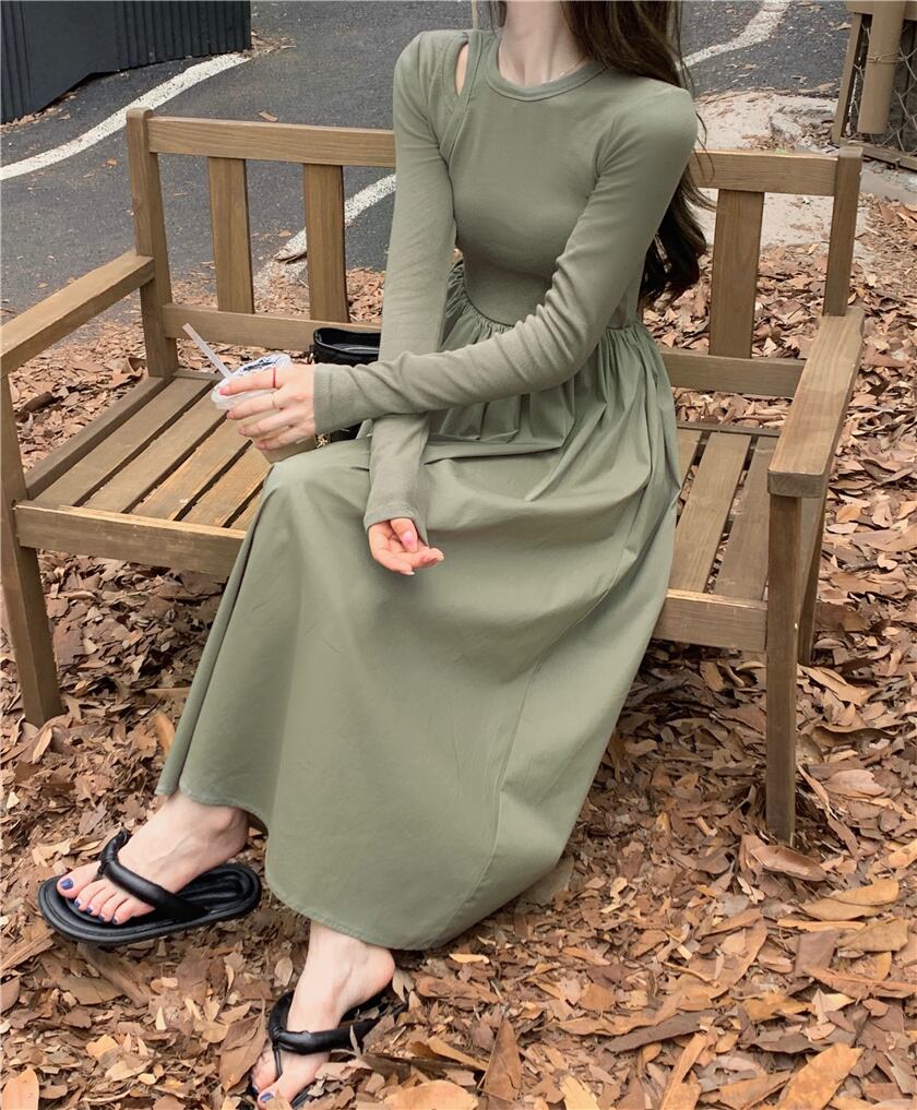 ワンピース レディース ミモレ丈 ロング丈 袖あり 長袖 ラウンドネック フレア かわいい 大人可愛い きれいめ シンプル カジュアル 大人 おしゃれ お洒落 かっこいい レトロ 大人可愛い 大人女子 こなれ感 ラフ メンズライク マニッシュ 個性的 クール モード系 送料無料 存在感 抜け感 無地 春 秋 冬 10代 20代 30代 40代 レディース 女性用 ママ OL 通勤 学生 通学 デート お出かけ 送料無料 女子会 休日 旅行 着回し 普段使い 重ね着 韓国 韓国系 ファッション