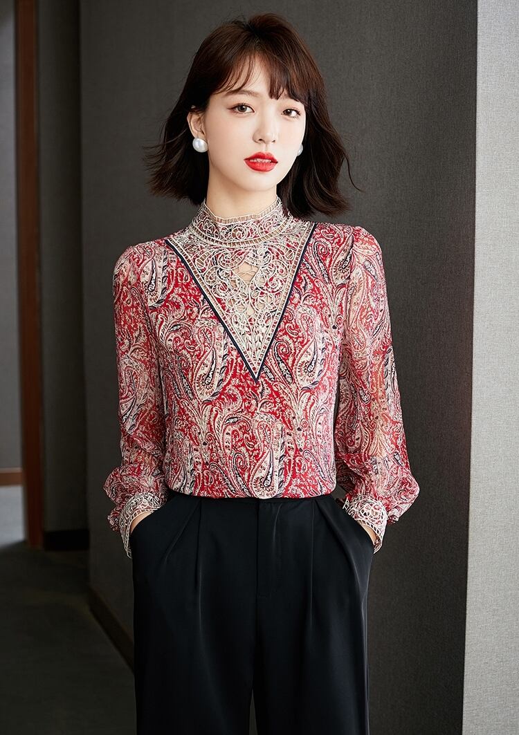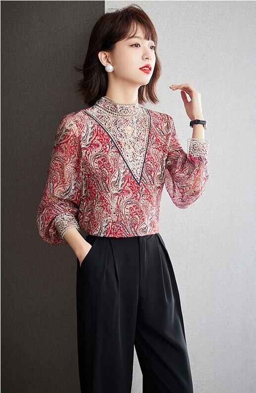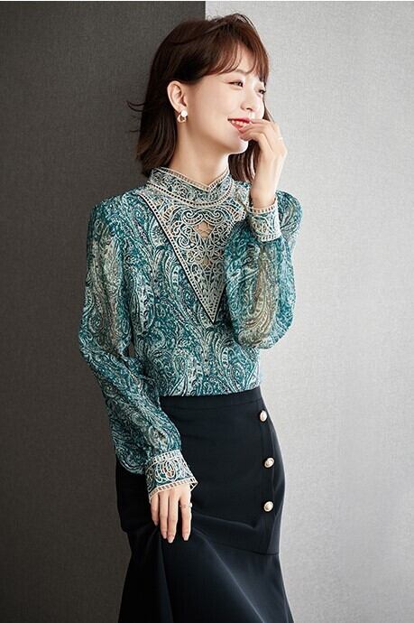 トップス レディース ブラウス プルオーバー 長袖 ボリューム袖 スタンドカラー タイト 細身 スリム 刺繍 シースルー 透け感 かわいい 大人可愛い きれいめ シンプル カジュアル 大人 上品 おしゃれ レトロ アジアン ガーリー セクシー エレガント 抜け感 S M L XL 2XL レッド グリーン 柄 春 夏 送料無料 20代 30代 40代 50代 OL 通勤 デート お出かけ女子会 パーティー イベント 着回し 普段使い 韓国系 ファッション コーデ スタイル モテ 流行 インスタ映え