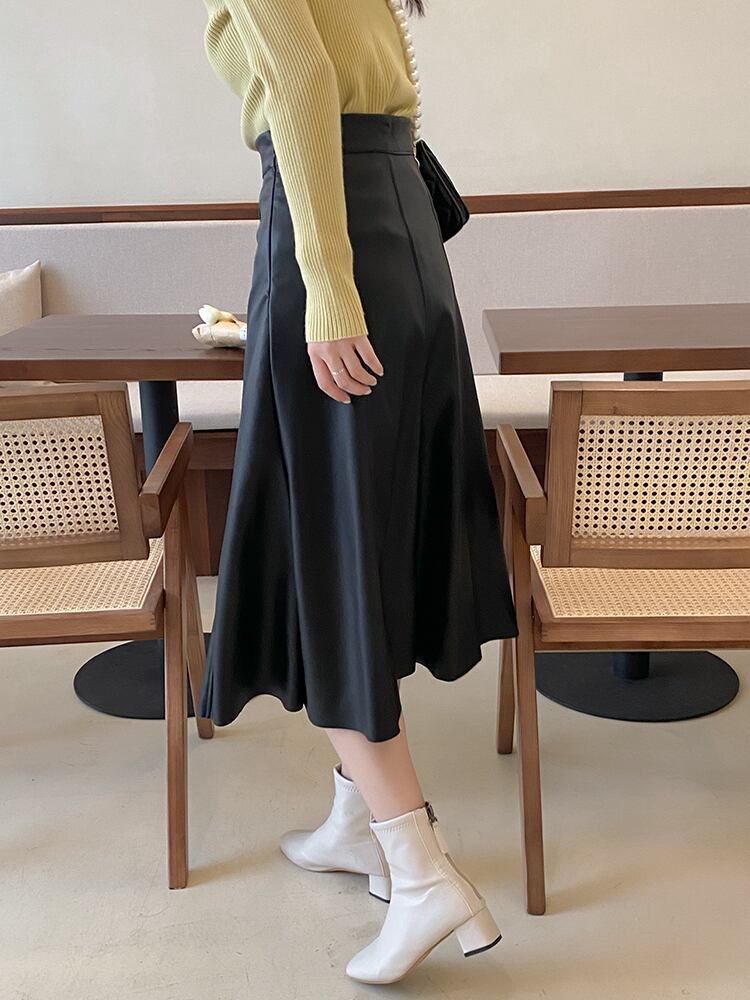スカート レディース フレアスカート 膝下 ミモレ ミモレ丈 フレア Aライン フェイクレザー かわいい 大人可愛い きれいめ シンプル カジュアル 大人 上品 おしゃれ お洒落 かっこいい レトロ 大人女子 こなれ感 ラフ ルーズ 個性的 クール モード系 エレガント 存在感 抜け感 無地 秋 10代 20代 30代 40代 レディース オフィス デート お出かけ 女子会 休日 着回し 普段使い 韓国 韓国系 送料無料 ファッション コーデ スタイル 楽ちん プチプラ トレンド 流行 インスタ映え