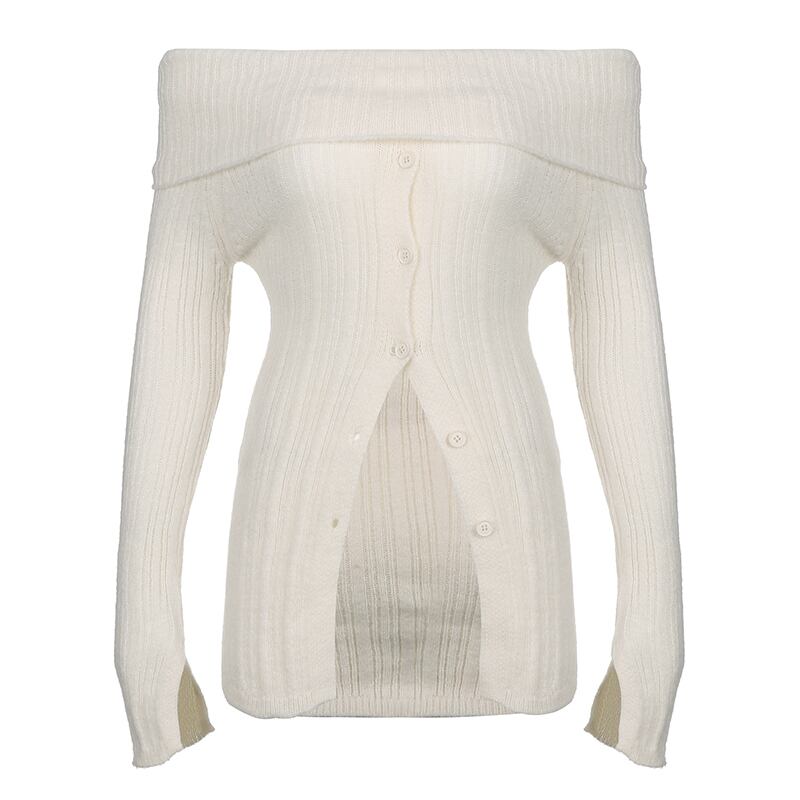 トップス レディース ニット セーター 長袖 オフショルダー オフショル 肩出し 肌見せ スリム タイト 細身 かわいい 大人可愛い カジュアル おしゃれ お洒落 こなれ感 セクシー エレガント 主役級 存在感 秋 冬 10代 20代 学生 通学 デート お出かけ 女子会 着回し 普段使い 韓国 韓国系 送料無料 ファッション コーデ スタイル モテ トレンド 流行 インスタ映え S M L XL 白 ホワイト