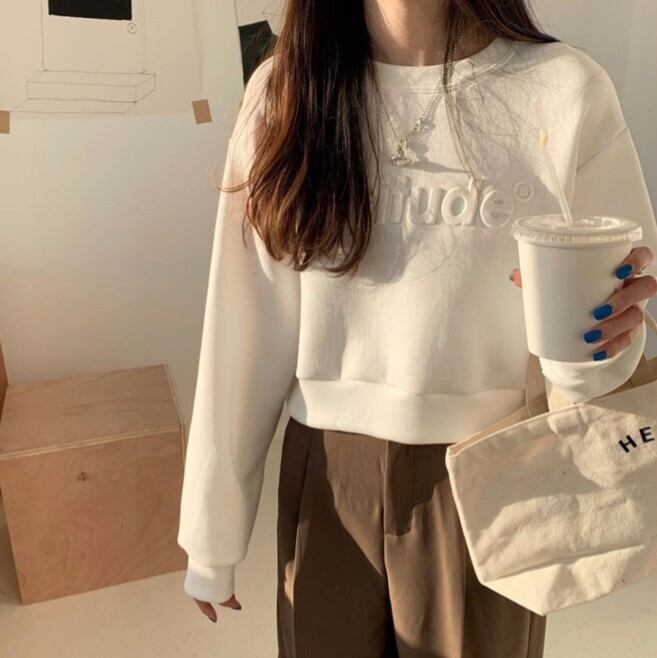 トップス レディース スウェット トレーナー プルオーバー ラウンドネック ショート丈 ロゴ 長袖 かわいい 大人可愛い カジュアル おしゃれ お洒落 かっこいい レトロ こなれ感 ラフ キュート 送料無料 存在感 無地 秋 冬 10代 20代 学生 通学 デート お出かけ 女子会 休日 着回し 普段使い 重ね着 韓国 韓国系 ファッション コーデ スタイル モテ トレンド 流行 インスタ映え ゆったり ゆる ワンサイズ フリーサイズ ブルー ホワイト グレー ピンク