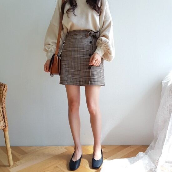チェック柄ショート丈ラップスカートです^^