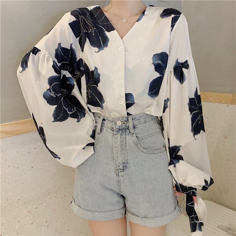 トップス レディース シャツ 長袖 ランタンスリーブ Vネック 前開き ボタン かわいい 大人可愛い きれいめ シンプル カジュアル 大人 上品 おしゃれ 大人女子 こなれ感 ラフ ラブリー キュート ガーリー 個性的 セクシー 送料無料 S M L XL ゆる ゆったり 花柄 春 夏 10代 20代 30代 ママ 通勤 学生 通学 デート お出かけ 女子会 リゾート 旅行 着回し 普段使い 重ね着 双子 韓国系 ファッション コーデ スタイル 楽ちん モテ 体型カバー トレンド 流行 インスタ映え