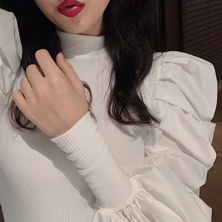 タイトなバストまわりと袖のボリューム感が、華奢見え・小顔見せを叶えてくれます♪