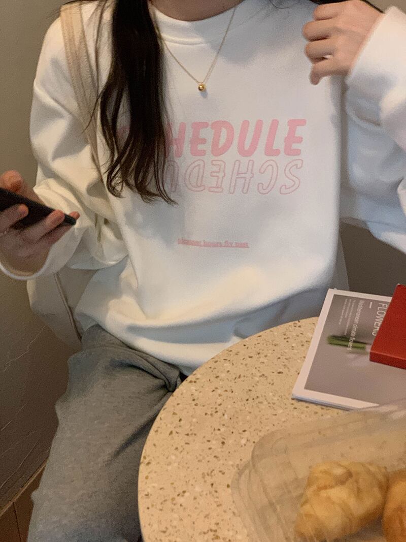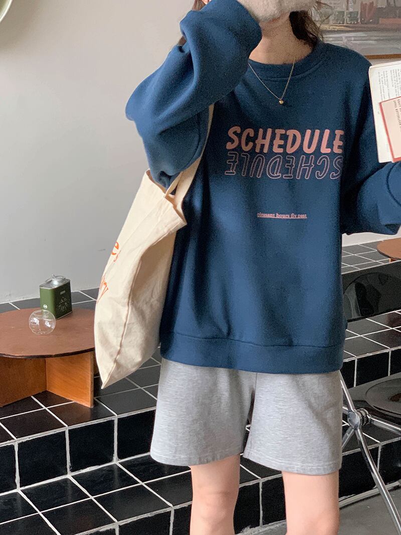 トップス レディース プルオーバー トレーナー スウェット 長袖 ラウンドネック かわいい 大人可愛い カジュアル おしゃれ お洒落 レトロ こなれ感 ラフ ラブリー キュート 主役級 存在感 スクール JK ストリート 無地 プリント ロゴ 秋 10代 20代 学生 通学 デート お出かけ 女子会 着回し 普段使い 韓国 韓国系 送料無料 ファッション コーデ スタイル トレンド 流行 インスタ映え ブラック ブルー ピンク ホワイト ネイビー パープル グレー アプリコット ワンサイズ