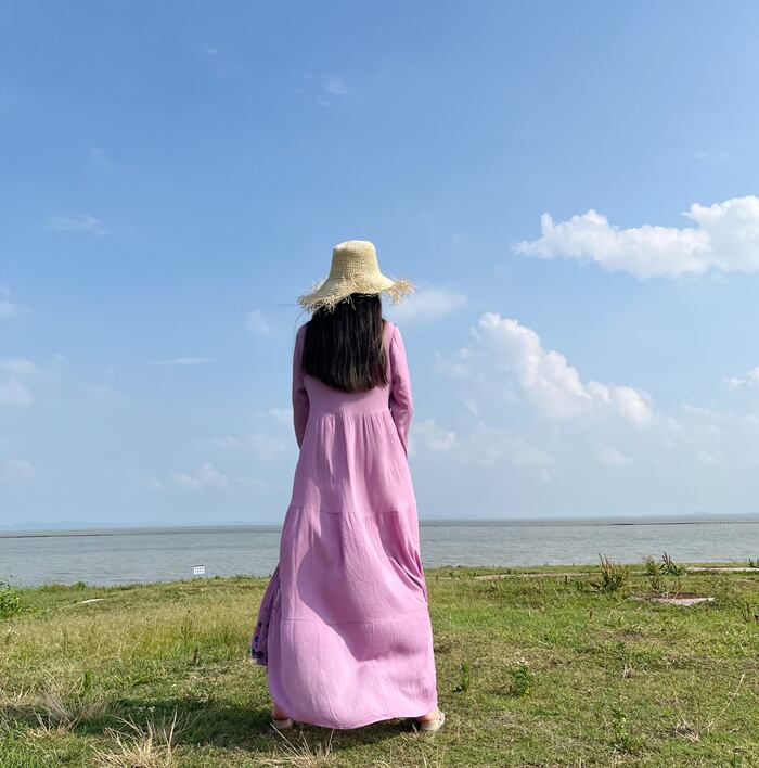 リゾートにピッタリなリラックス感が魅力のワンピース。