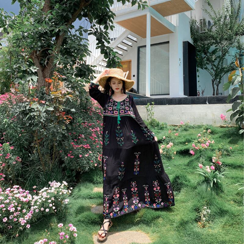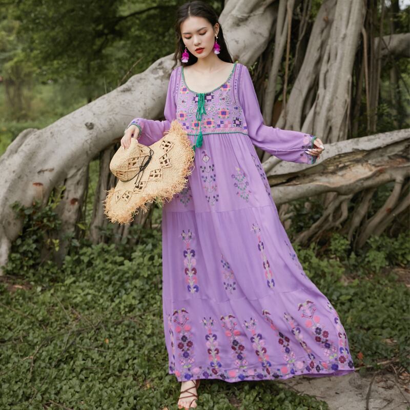 ワンピース レディース ロングワンピース ロングスリーブ 3カラー ホワイト ブラック パープル エキゾチック ボヘミアン リゾート 海 休暇 休日 お出かけ 避暑地 旅行 海外旅行 大人可愛い 大人 かわいい 綺麗 きれい 上品 リラックス ガーリー キュート 華やか デート ビーチ ホテルステイ ゆったり ゆる 楽ちん 落ち感 こなれ感 送料無料 10代 20代 30代 40代 春 夏 ママ コーデ コーディネート S M L XL 白 黒 紫 ルーズ アジアン エスニック スリムドレス ロング丈