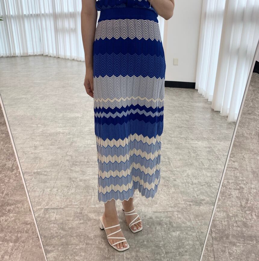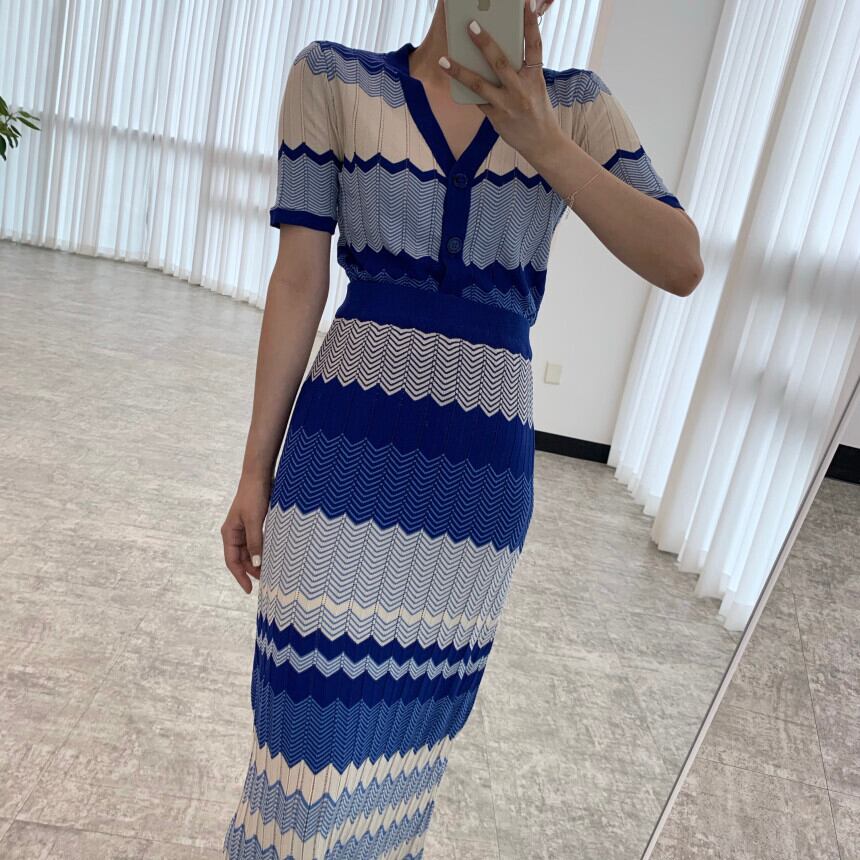 セットアップ レディース ニット トップス スカート ボトムス ロング 半袖 ロング丈 Vネック 上下セット 2点セット ツーピース ハーフスリーブ レトロ ウェーブ ニットトップ 大人 上品 おしゃれ お洒落 大人女子 こなれ感 送料無料 存在感 お呼ばれ 20代 30代 40代 デート 普段使い ファッション コーデ モテ トレンド 流行 インスタ映え フリーサイズ ブルー ホワイト ジャケット ボタン タイト 個性的 女子会 旅行 お泊り 青 白 モダン スタイルアップ ウエストゴム