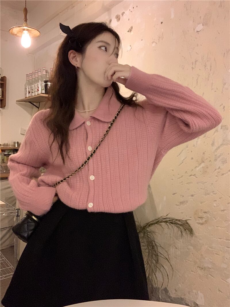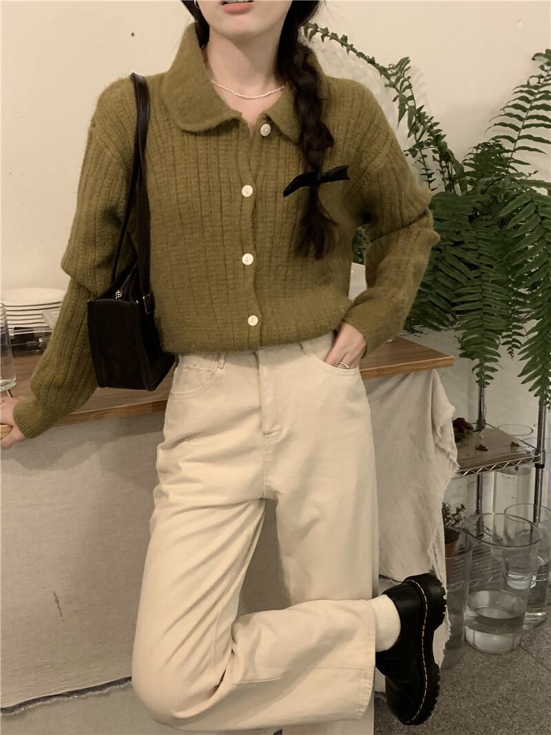 トップス レディース ニット セーター カーディガン 長袖 襟付き かわいい 大人可愛い きれいめ カジュアル 上品 おしゃれ お洒落 ラブリー キュート ガーリー 主役級 存在感 フェミニン 秋 冬 10代 20代 30代 40代 学生 通学 デート お出かけ 女子会 休日 着回し 普段使い 韓国 韓国系 送料無料 ファッション コーデ スタイル モテ 体型カバー トレンド 流行 インスタ映え グリーン ピンク ホワイト ワンサイズ フリーサイズ