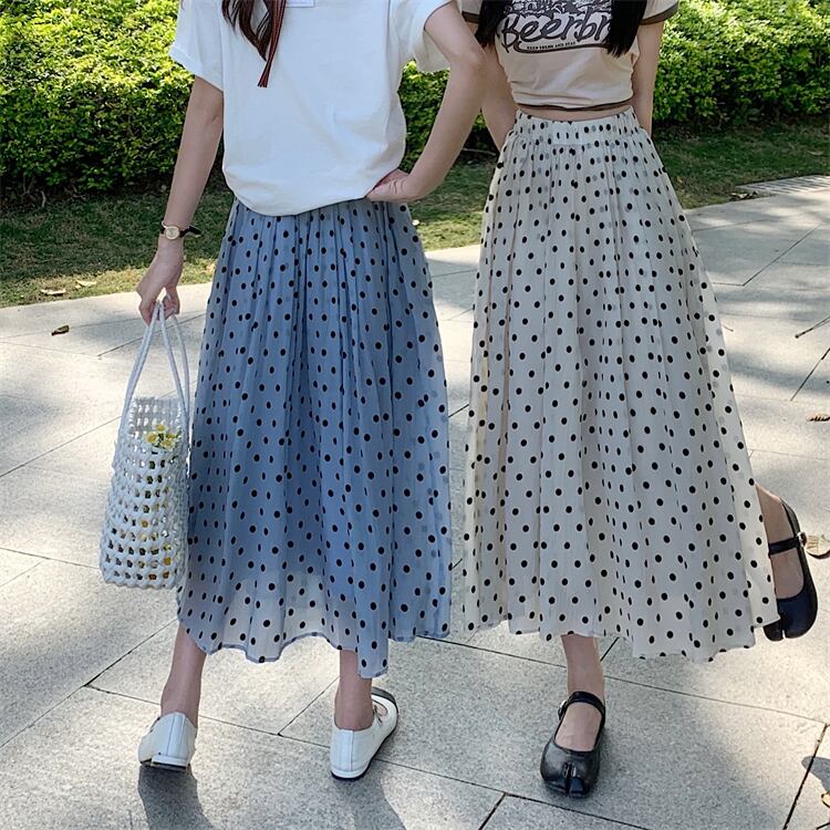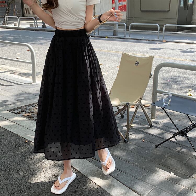 スカート レディース シフォンカート ロング ロング丈 ひざ下 Aライン ハイウエスト ウエストゴム 透け感 チュール かわいい 大人可愛い きれいめ シンプル 大人 上品 おしゃれ お洒落 送料無料 ラブリー キュート フェミニン ドット柄 水玉 春 夏 秋 10代 20代 30代 40代 オフィス ビジネス OL 通勤 学生 通学 デート 休日 着回し 普段使い 韓国 韓国系 ファッション コーデ スタイル モテ 体型カバー 美脚 脚長 フリーサイズ ホワイト ベージュ ピンク ブラック ブルー
