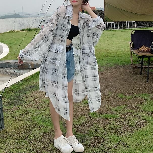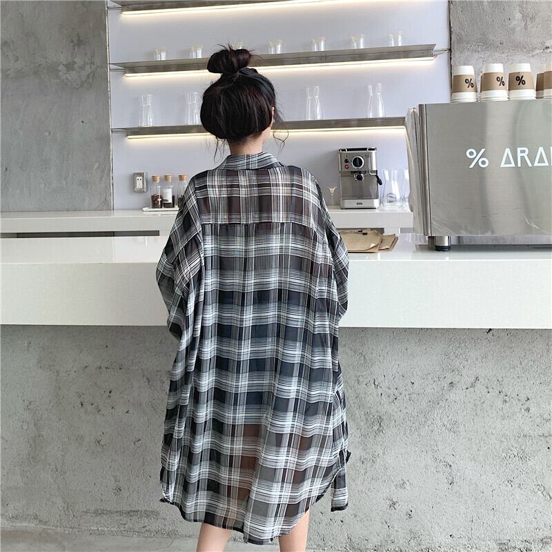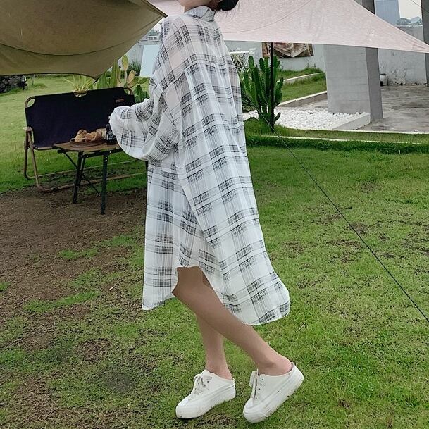 トップス レディース シャツ ブラウス M L XL 2XL 3XL 長袖 襟付き チェック柄 ロングシャツ 薄手 ルーズ かわいい 大人可愛い きれいめ カジュアル 大人 上品 おしゃれ お洒落 かっこいい レトロ 送料無料 ラフ クール エレガント 春 秋 冬 10代 20代 30代 40代 50代 オフィス ビジネス OL 通勤 学生 通学 デート お出かけ 女子会 休日 着回し 普段使い 重ね着 韓国 韓国系 ファッション コーデ スタイル モテ 体型カバー トレンド 流行 インスタ映え ホワイト