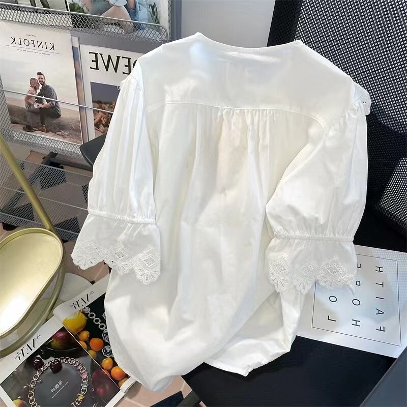 トップス レディース シャツ ブラウス 半袖 刺繍 レース フリル 甘め かわいい 大人可愛い きれいめ 大人女子 こなれ感 ラブリー キュート ガーリー エレガント フェミニン 無地 フラワー 春 夏 お呼ばれ 10代 20代 30代 学生 通学 デート お出かけ 女子会 着回し 普段使い お揃い 韓国 韓国系 送料無料 ファッション モテ トレンド 流行 S M L XL 白 ホワイト