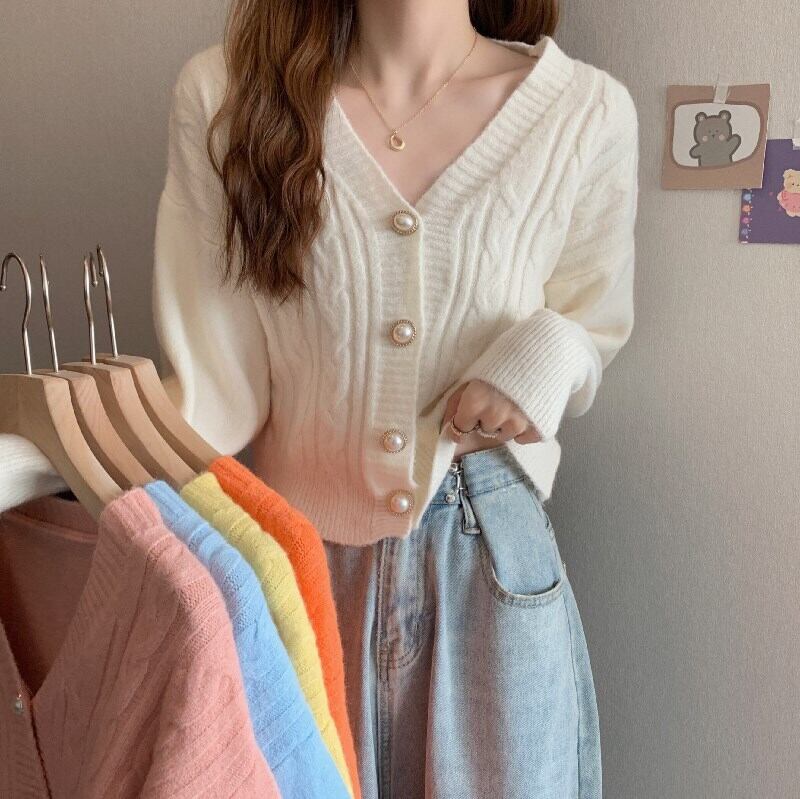 トップス レディース ニット セーター カーディガン 長袖 ショート丈 かわいい 大人可愛い きれいめ 大人 上品 おしゃれ お洒落 こなれ感 キュート エレガント 送料無料 存在感 無地 秋 冬 パールボタン お呼ばれ OL 通勤 学生 通学 デート お出かけ 女子会 休日 着回し 普段使い 重ね着 韓国 韓国系 ファッション コーデ スタイル モテ 体型カバー トレンド 流行 インスタ映え フリーサイズ ピンク オレンジ ブルー イエロー ホワイト