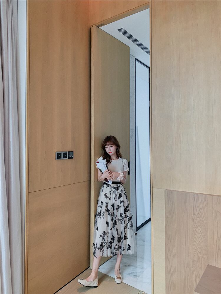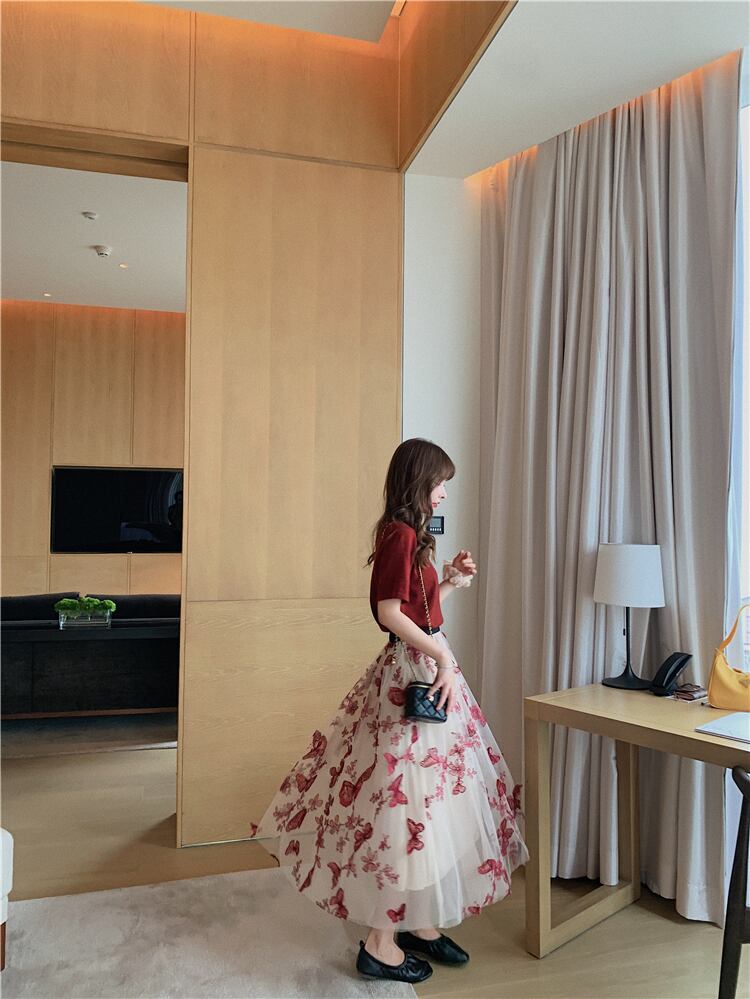 バタフライとフラワーが可愛い、女性らしさ抜群の一着です♡