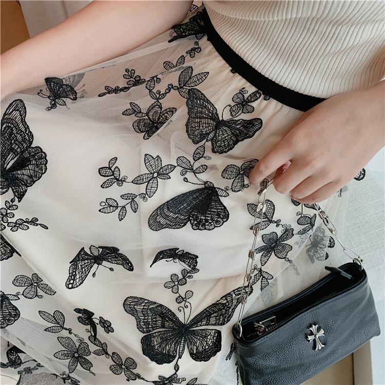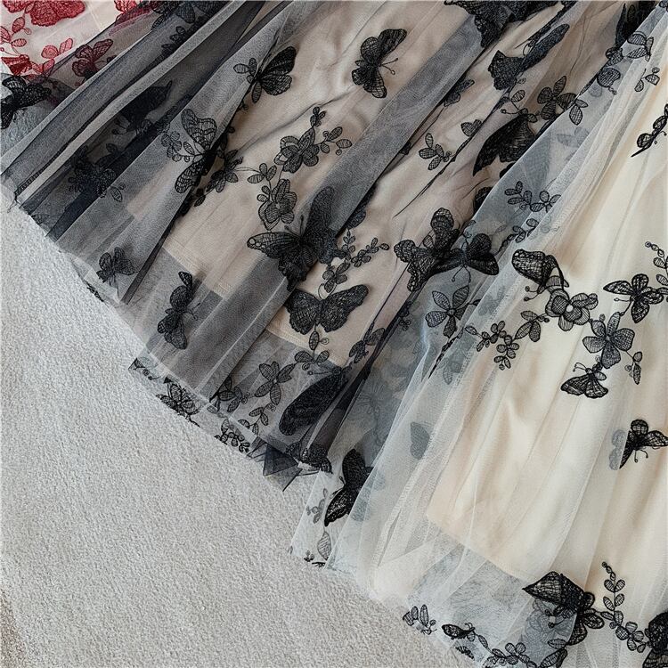 スカート レディース チュールスカート 3カラー S M L XL ブラック アプリコット ワインレッド カラバリ ボトムス ロングスカート バタフライ 花 立体感 チュール シアー 透け感 裏地付き ウエストゴム 楽ちん フレア Aライン ハイウエスト スタイルアップ 脚長効果 体型カバー 華やか きれいめ カジュアル フェミニン キュート 大人可愛い おしゃれ 普段使い デート お出かけ 女子会 休日 旅行 通勤 着まわし ファッション コーデ スタイル モテ 送料無料 サイズ展開豊富 大きいサイズ