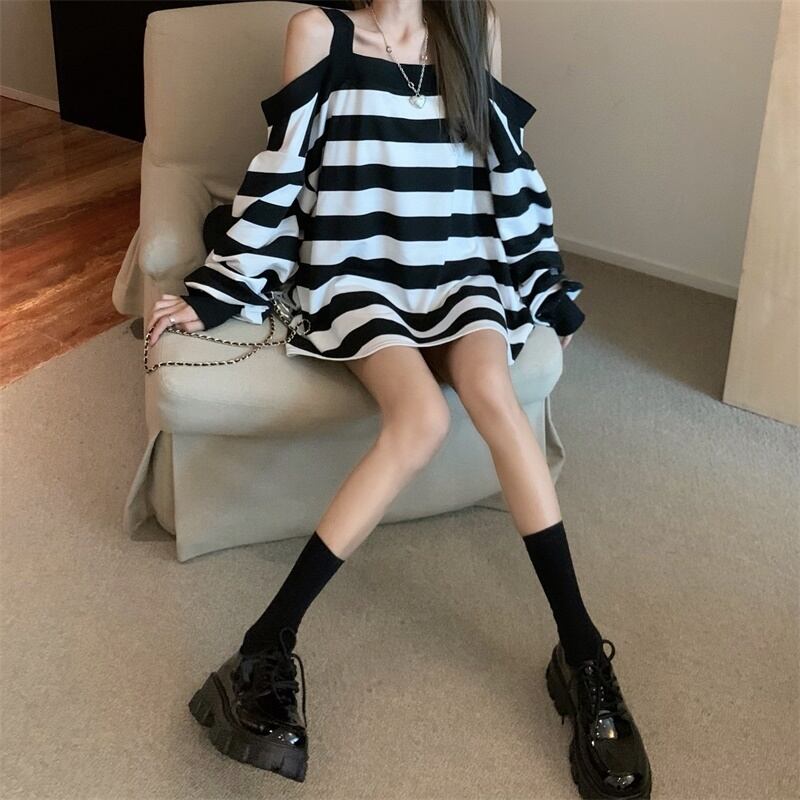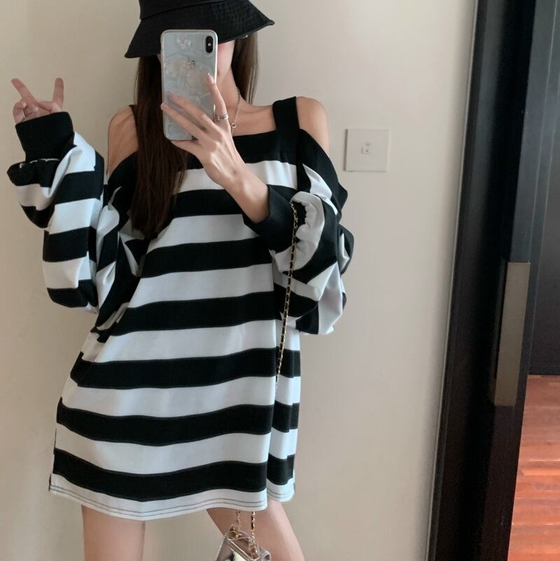 トップス レディース 長袖Tシャツ オフショルダー 長袖 かわいい 可愛い カジュアル お洒落 おしゃれ オシャレ ラフ ラブリー キュート セクシー 抜け感 L XL 2XL 3XL 4XL 大きいサイズ 大きめ ゆる ゆったり ビッグサイズ ボーダー 柄 ホワイト ブラック 春 夏 誕生日 送料無料 10代 20代 学生 通学 大学生 デート お出かけ 買い物 ショッピング 公園 女子会 休日 お泊まり イベント 旅行 普段使い ファッション コーデ スタイル 楽ちん モテ 体型カバー トレンド