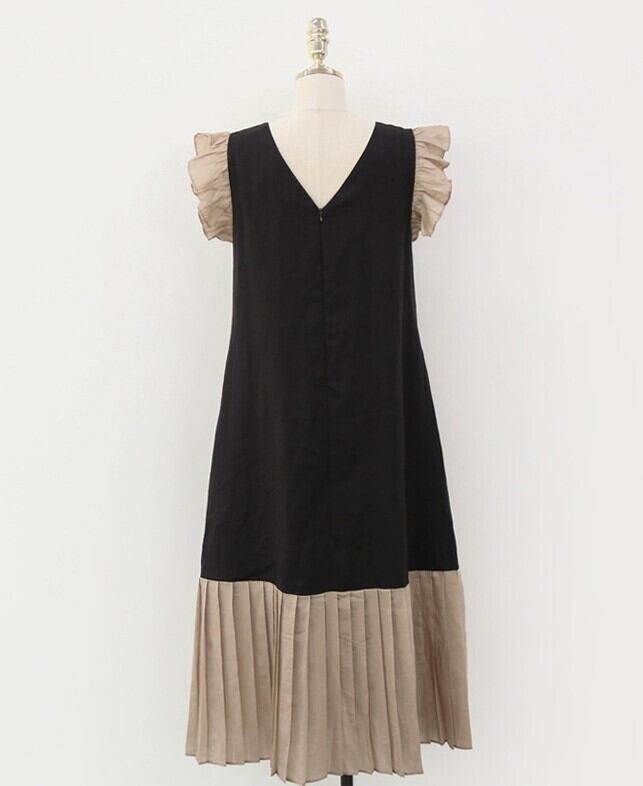 ワンピース レディース プリーツスカート ロングワンピース ロング ロング丈 ノースリーブ Vネック フリル かわいい 大人可愛い きれいめ 上品 エレガント フェミニン おしゃれ お洒落 セクシー ナチュラル 送料無料 ラブリー キュート ガーリー ロマンチック 抜け感 華やか 無地 女子会 パーティー イベント リゾート 旅行 散歩 フリーサイズ ブラック 黒 バイカラー 10代 20代 30代 40代 韓国 韓国系 着回し 体型カバー モテ トレンド 流行 インスタ映え