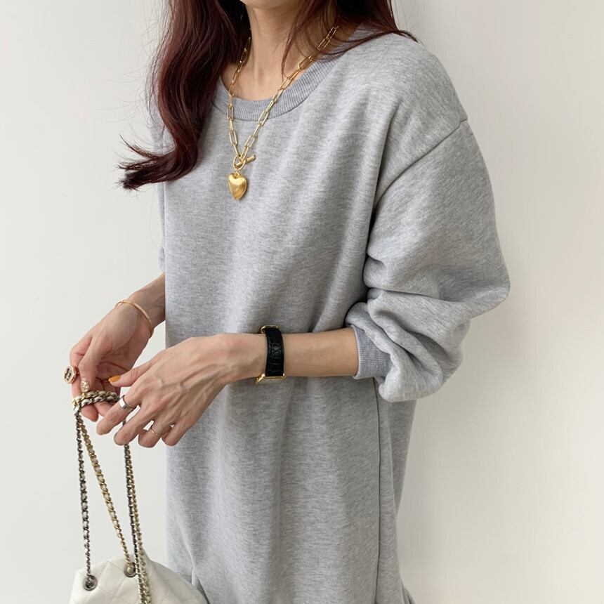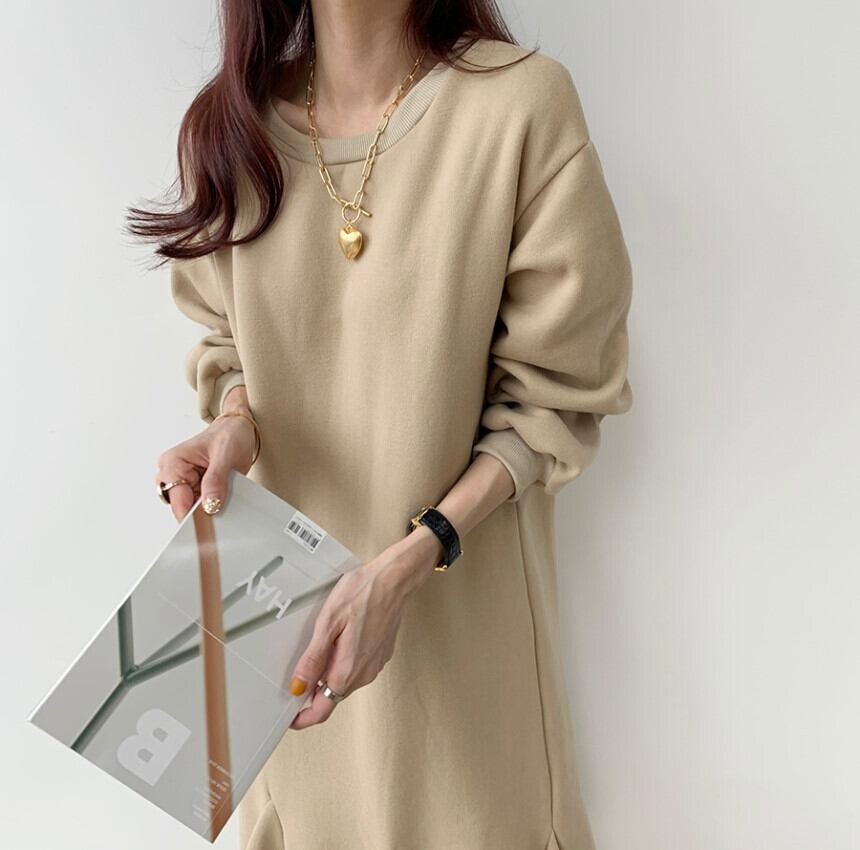 ワンピース レディース ロングワンピース マーメイドワンピース スウェットワンピース ミモレ丈 長袖 ラウンドネックIラインマーメイド裾フレアスウェットかわいい 大人可愛い シンプル カジュアル おしゃれ お洒落 こなれ感 ラフ スポーティー 抜け感 ナチュラル 無地 お出かけ お泊り 休日 アウトドア 送料無料 公園 フリーサイズ ゆ ったり アプリコット ベージュ グレー 灰色 ブラック 黒 春 秋 冬 20代 30代 40代 ママ ファッション 韓国 普段使い 体型カバー 楽ちん 定番 トレンド