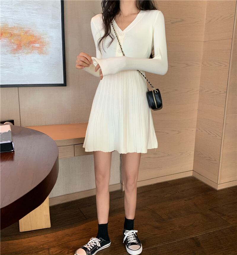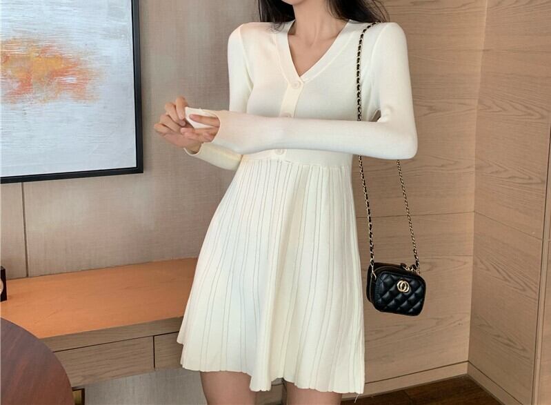 ワンピース レディース ニットワンピース ミニワンピース Vネック スリム Aライン ミニ丈 甘め 長袖 かわいい 大人可愛い きれいめ おしゃれ お洒落 上品 キュート ガーリー 主役級 存在感 フェミニン 無地 秋 冬 お呼ばれ 10代 20代 30代 学生 通学 デート お出かけ 女子会 休日 着回し 普段使い 韓国 韓国系 送料無料 ファッション コーデ スタイル 防寒 モテ 美脚 脚長 プレゼント ギフト トレンド 流行 インスタ映え S M L XL 黒 ブラック 白 ホワイト