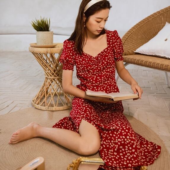 ワンピース レディース 小花柄ワンピース スリット 小花柄 半袖 可愛い かわいい きれいめ 大人 上品 オシャレ お洒落 おしゃれ 大人可愛い 大人女子 ラブリー キュート セクシー エレガント 送料無料 存在感 S M L XL 柄 フラワー レッド 赤 春 夏 誕生日 ランチ ディナー バースデー ママ デート お出かけ 買い物 ショッピング お出かけ 公園 女子会 お泊まり 休日 パーティー イベント 旅行 リゾート 海 プール ファッション コーデ スタイル モテ インスタ映え トレンド 韓国