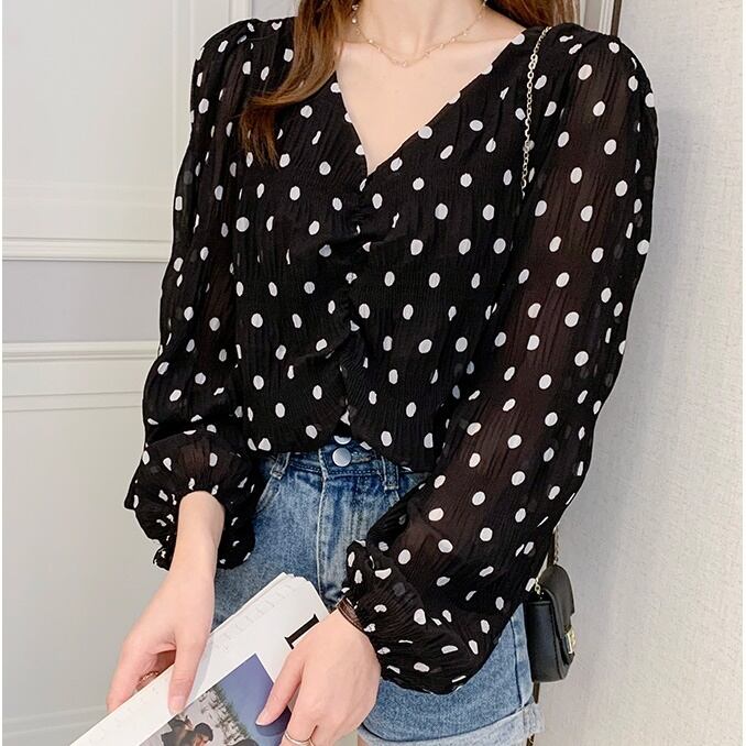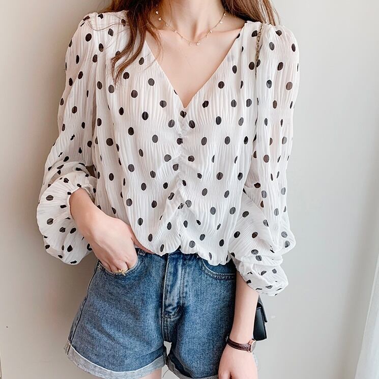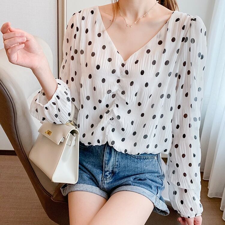 トップス レディース ブラウス 長袖 ボリューム袖 バルーン袖 パフスリーブ ハートネック Vネック 透け感 シースルー シフォン かわいい 大人可愛い シンプル カジュアル 上品 おしゃれ お洒落 こなれ感 綺麗 セクシー キュート ガーリー レトロ ドット柄 水玉 通勤 学生 デート お出かけ 女子会 休日イ ベント 送料無料 ホワイト 白 ブラック 黒 10代 20代 30代 韓国 普段使い 定番 トレンド プレゼント ママ ファッション
