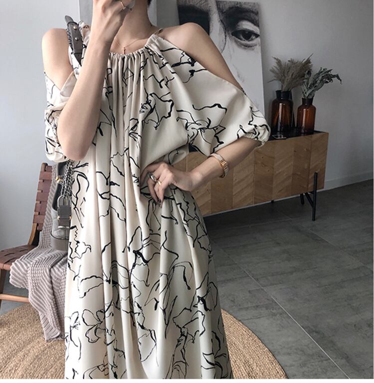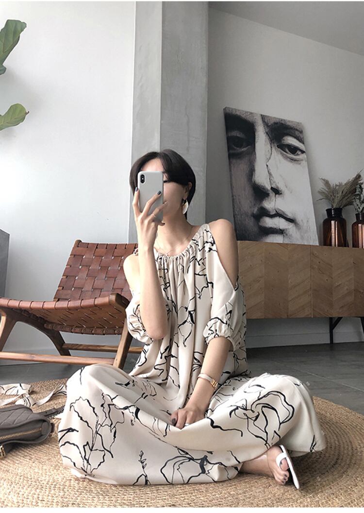 ワンピース レディース フレアワンピース キャミソールワンピース キャミワンピ ロングワンピース ロング ロング丈 9分丈 袖あり 七分袖 スリットスリーブ 裾フレア ゆったり プルオーバー かわいい 大人可愛い きれいめ カジュアル 上品 エレガント おしゃれ お洒落 綺麗 おとな 送料無料 ラフ 個性的 リラックス 抜け感 華やか 爽やか 花柄 フラワー デート 女子会 お泊まり 休日 パーティー イベント リゾート 旅行 海 プール 夏 10代20代 30代 プレママ