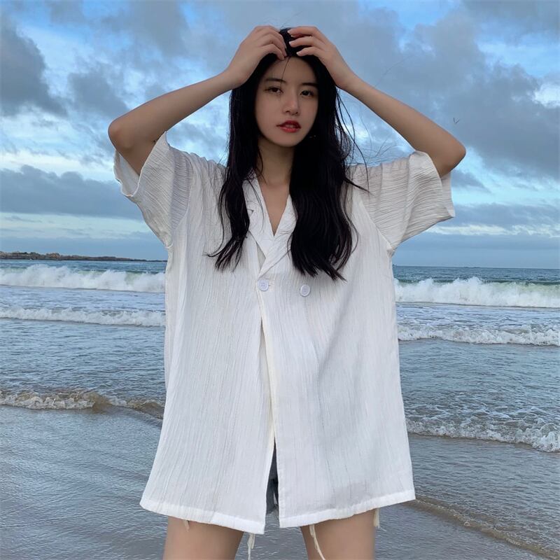 トップス レディース シャツ ジャケット ビッグシャツ 半袖 5分袖 ビッグカラー Vネック 透け感 ビッグシルエット オーバーサイズ かわいい 大人可愛い シンプル カジュアル おしゃれ お洒落 ストリート セクシー ラフ ボーイッシュ 無地 学生 デート お出かけ 休日 アウトドア イベント リゾート BBQ 公園 送料無料 海 ワンサイズ フリーサイズ オーバーサイズ 春 夏 秋 10代 20代 30代 韓国 普段使い 定番 トレンド ファッション コーデ
