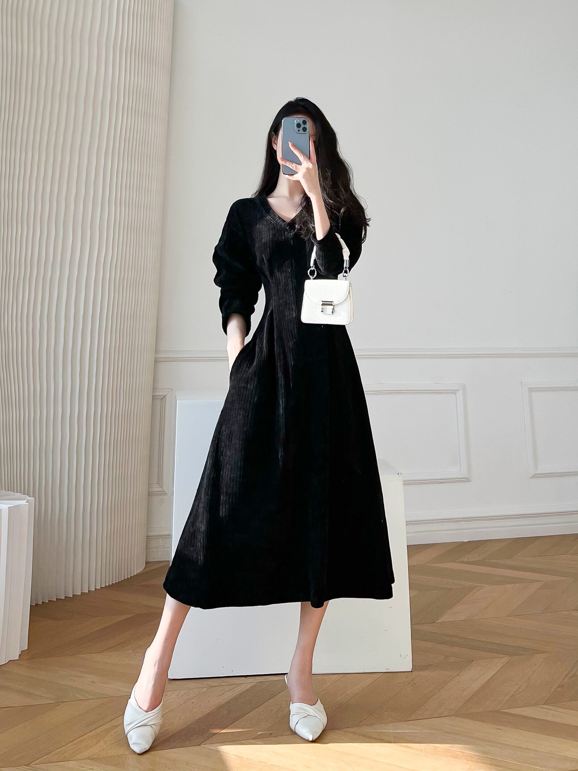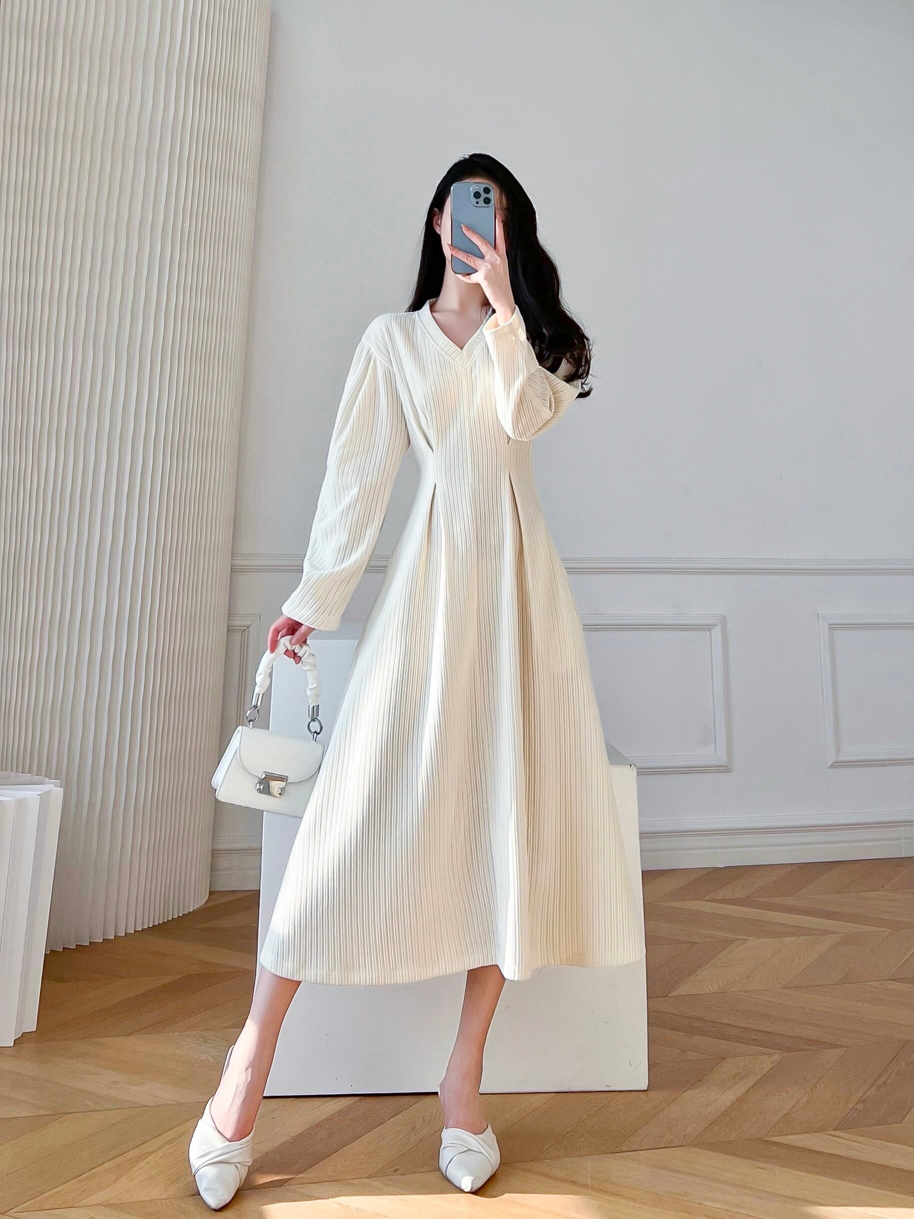 ワンピース レディース 2色 フレアワンピース ミディアム丈 長袖 Vネック フレア ウエストマーク ハイウエスト ニット かわいい 大人可愛い きれいめ シンプル カジュアル 上品 エレガント 清楚 おしゃれ 綺麗 おとな ガーリー 華やか 無地 通勤 学生 通学 デート お出かけ 女子会 パーティー イベント 散歩 カフェ巡り 送料無料 M L XL 2XL ホワイト ブラック 春 秋 10代 20代 30代 ママ 韓国系 着回し 普段使い 脚長 ファッション コーデ スタイル モテ トレンド 流行