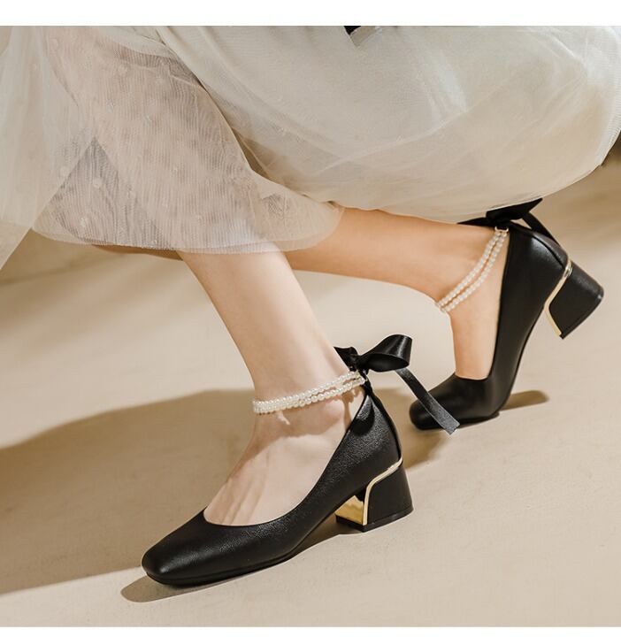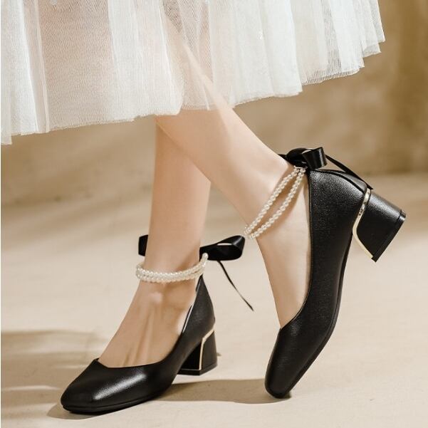 シューズ レディース パンプス 2色 スクエアトゥ フォーマルシューズ ヒール 太ヒール ローヒール ストラップ リボン パール 脚長 かわいい 大人可愛い 上品 エレガント 清楚 フェミニン おしゃれ 綺麗 お嬢様 フォーマル おとな ナチュラル ラブリー キュート ガーリー 送料無料 大人 アプリコット 黒 無地 春 秋 冬 記念日 食事会 冠婚葬祭 OL 通勤 学生 通学 デート お出かけ 女子会 パーティー アート鑑賞 10代 20代 30代 40代 きちんと感 普段使い お呼ばれ 旅行 食事会