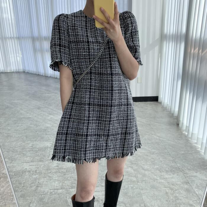 ワンピース レディース ミニワンピース 膝上ワンピース 膝上 半袖 半袖ワンピース かわいい 可愛い 大人可愛い きれいめ 大人 上品 お洒落 オシャレ おしゃれ 大人女子 ラブリー キュート 主役級 存在感 S M L ツイード ブラック 誕生日 バースデー ランチ ディナー 記念日 学生 大学生 デート お出かけ ショッピング 買い物 女子会 お泊まり 休日 パーティー イベント リゾート 旅行 韓国 韓国系 送料無料 ファッション コーデ スタイル モテ トレンド 流行 美脚 インスタ映え