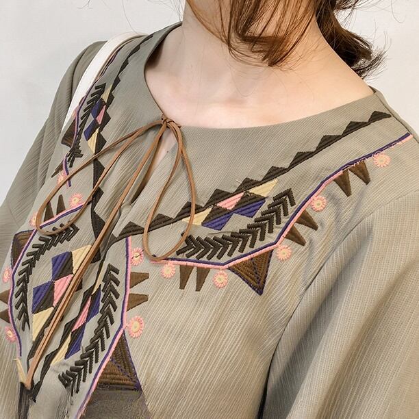 アジアンな模様が刺繍されたトップスです♪