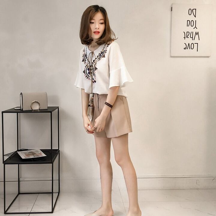 大きいサイズあり トップス レディース ブラウス M L XL 2XL 3XL 5分袖 ラウンドネック リボン Tシャツ 半袖 フリル スリーブ 刺繍 コットン 麻 アジアン エスニック かわいい 大人可愛い カジュアル おしゃれ お洒落 ラフ ガーリー 個性的 レトロ ナチュラル 学生 デート お出かけ 女子会 休日 リゾート アウトドア BBQ 送料無料 公園 グリーン 緑 カーキ ホワイト 白 春 夏 秋 10代 20代 30代 韓国 普段使い 定番 トレンド ファッション コーデ プラスサイズ