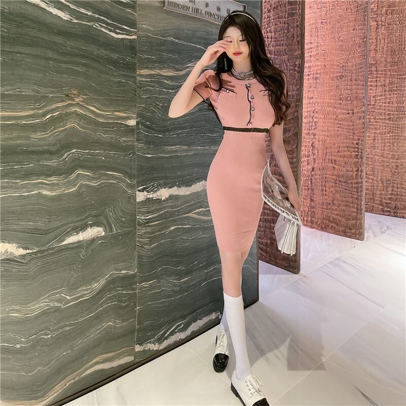 ワンピース レディース ニットワンピース 4カラー フリーサイズ ニットワンピ タイトワンピース タイト ハイウエスト ミニ丈 ミニワンピース 半袖 4色 アプリコット ブルー ブラック ピンク カラバリ 無地 ニット ボタン シンプル フェミニン エレガント セクシー 大人可愛い おしゃれ イベント デート お出かけ 女子会 休日 旅行 ファッション コーデ スタイル モテ 送料無料 韓国系 おとな 通勤 OL タイトシルエット フロントボタン 着痩せ 細見え お呼ばれ ボディコン スリム 女っぽ 細身
