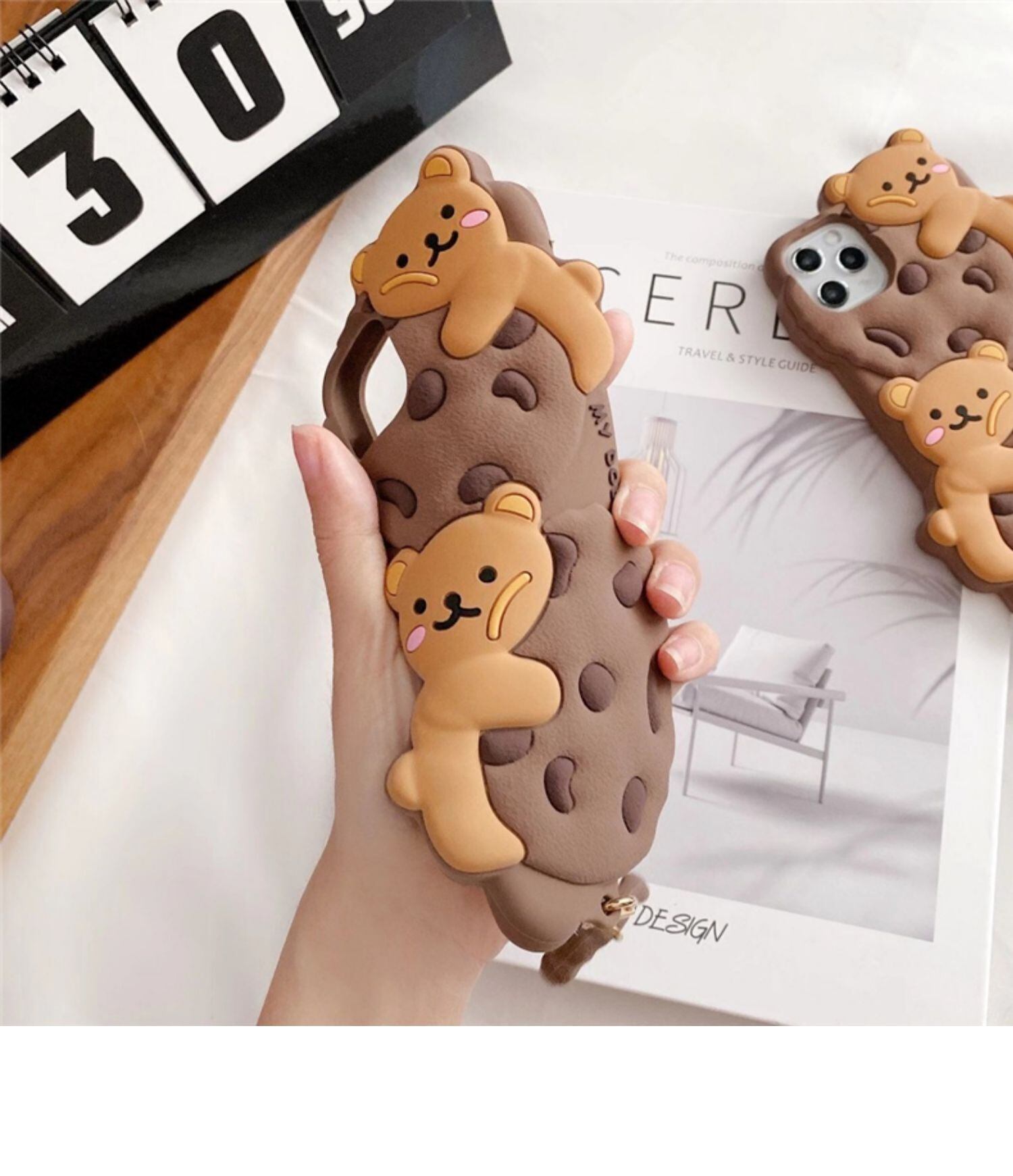 クッキーに抱き着いているクマさんがとってもキュートなスマホケースです^^