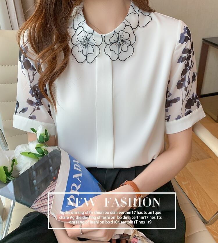 トップス レディース シャツ ブラウス S M L XL 2XL ブラック ホワイト モノトーン ブラウス 花柄 フラワーモチーフ 半袖 ペタルカラー 花びら かわいい きれいめ カジュアル フェミニン キュート 大人可愛い おしゃれ 普段使い デート お出かけ 女子会 休日 旅行 通勤 通学 着まわし ファッション コーデ スタイル モテ ガーリー 送料無料 韓国系 春 秋 OL オフィス ビジネス カジュアル