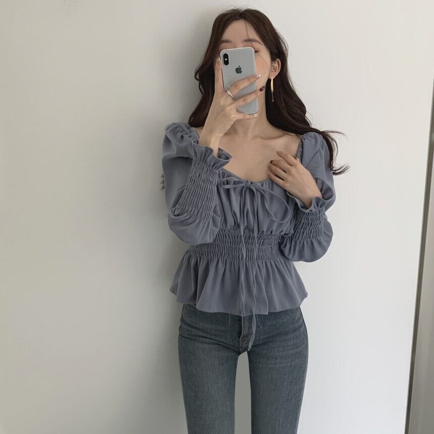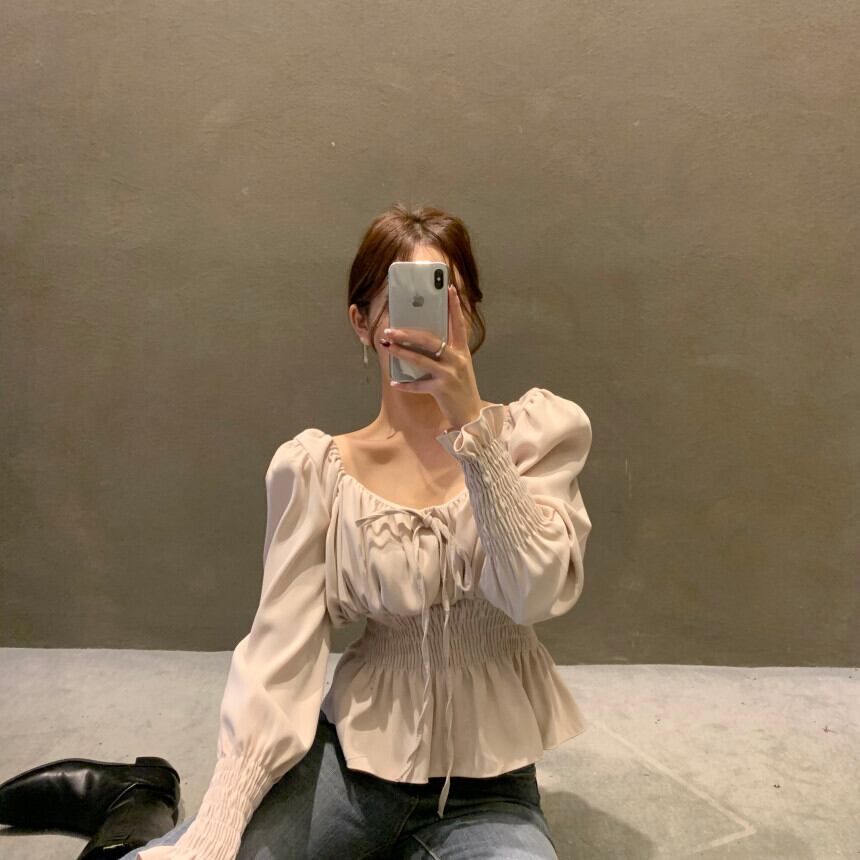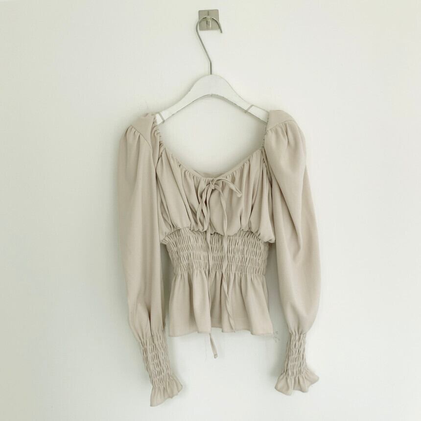おしゃれなパフスリーブリボンシャーリングトップス★