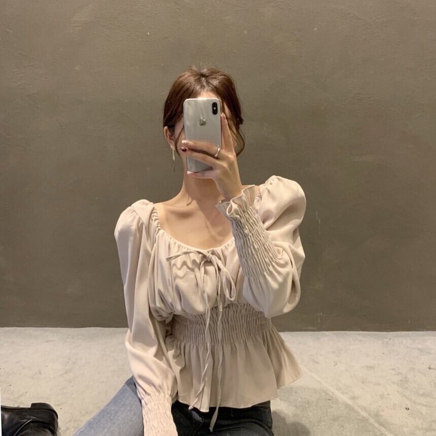 トップス レディース 2色 カットソー 長袖 パフスリーブ スクエアネック スリム タイト 細身 リボン 綿 かわいい 大人可愛い きれいめ シンプル カジュアル 上品 エレガント 清楚 フェミニン おしゃれ 綺麗 セクシー おとな ナチュラル ガーリー ルーズ 抜け感 華やか 無地 通勤 学生 通学 デート お出かけ 女子会 イベント 散歩 美術館巡り アート鑑賞 カフェ巡り 送料無料 S M L XL アプリコット グレーブルー 春 秋 10代 20代 30代 ママ 韓国系 普段使い 体型カバー モテ