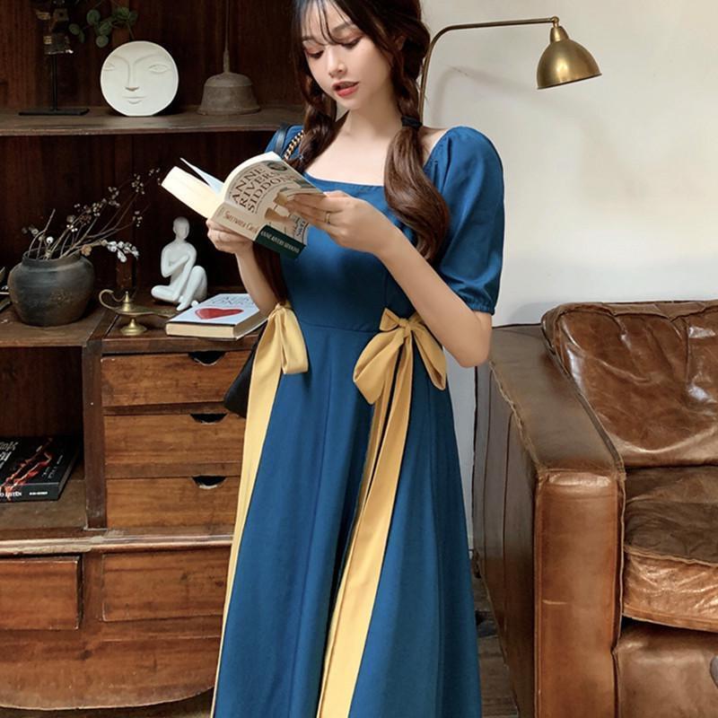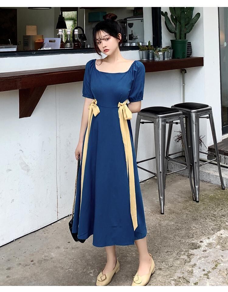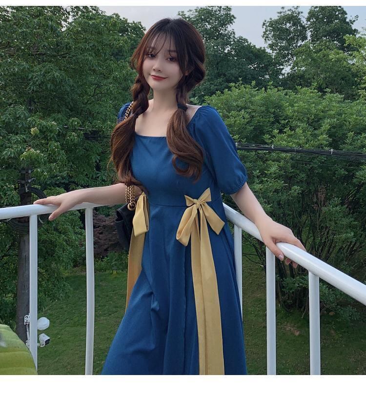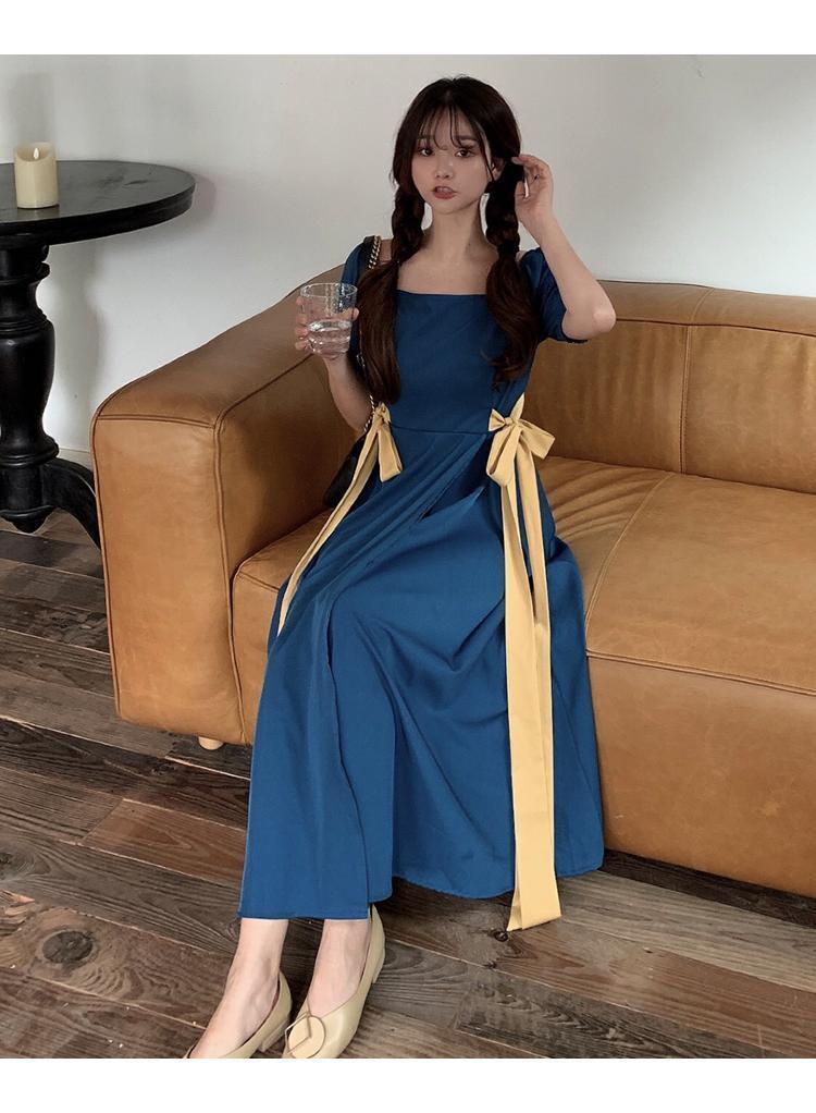 ワンピース レディース ドレス ロングワンピース ロング ロング丈 半袖 Aライン ゆったり リボン ハイウエスト かわいい 大人可愛い きれいめ シンプル カジュアル 清楚 フェミニン おしゃれ お洒落 ナチュラル 送料無料 キュート ガーリー 個性的 リラックス レトロ ロマンチック 無地 デート お出かけ 女子会 お泊まり 休日 L XL 2XL 3XL 4XL ゆったり ゆる ブルー 青 10代 20代 30代 韓国 韓国系 体型カバー 楽ちん ファッション モテ トレンド 流行 春 夏 秋
