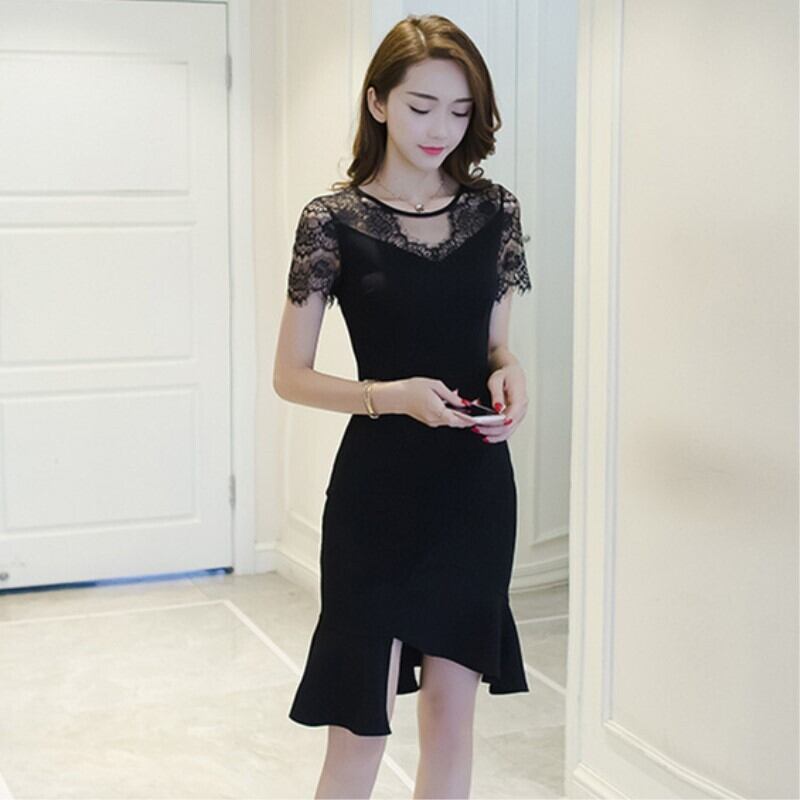 ドレス レディース ブラックドレス S M L XL ブラック 美シルエット ミニドレス アイラッシュレース フィッシュテール マーメイド フリル アシンメトリー ラウンドネック ミニ丈 透け感 半袖 タイト シンプル フェミニン エレガント セクシー 華やか 上品 大人可愛い おしゃれ イベント デート お出かけ 休日 フォーマル パーティー お呼ばれ 二次会 オケージョン ファッション コーデ モテ 送料無料 こなれ感