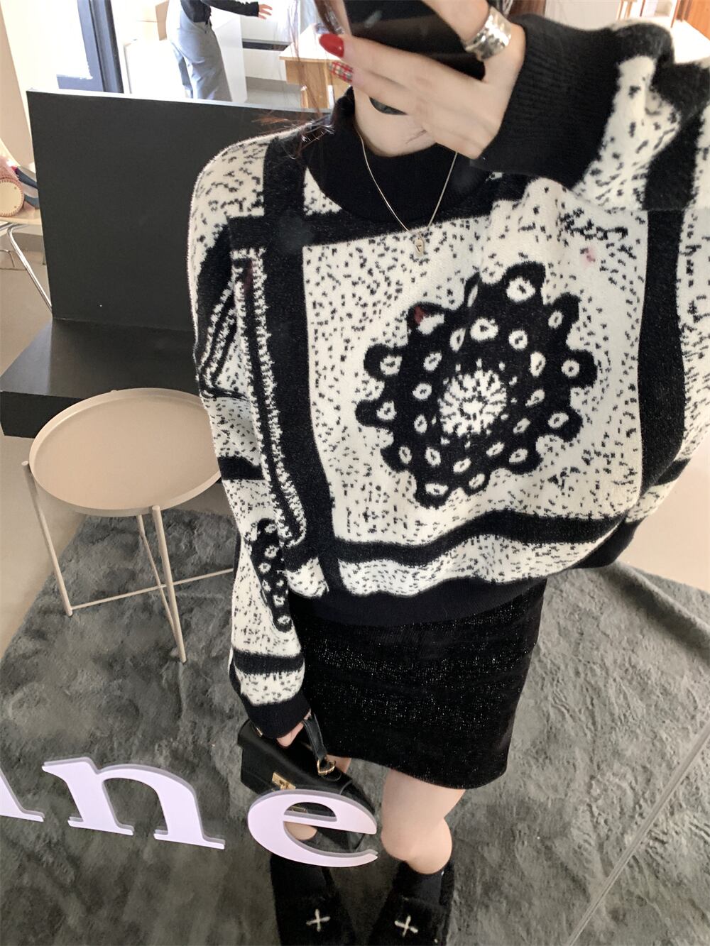 トップス レディース ニット セーター ショート ショート丈 長袖 ラウンドネック ワイド プルオーバー かわいい 大人可愛い カジュアル おしゃれ お洒落 かっこいい クール モード系 ストリート 大人 送料無料 ラフ メンズライク マニッシュ ボーイッシュ ルーズ 個性的 レトロ モダン アンティーク 抜け感 シック ジャカード アニマル柄 学生 通学 デート お出かけ 女子会 休日 S M L XL ゆったり ゆる ブラック 黒 秋 冬 10代 20代 30代 女性用 韓国 着回し 普段使い モテ