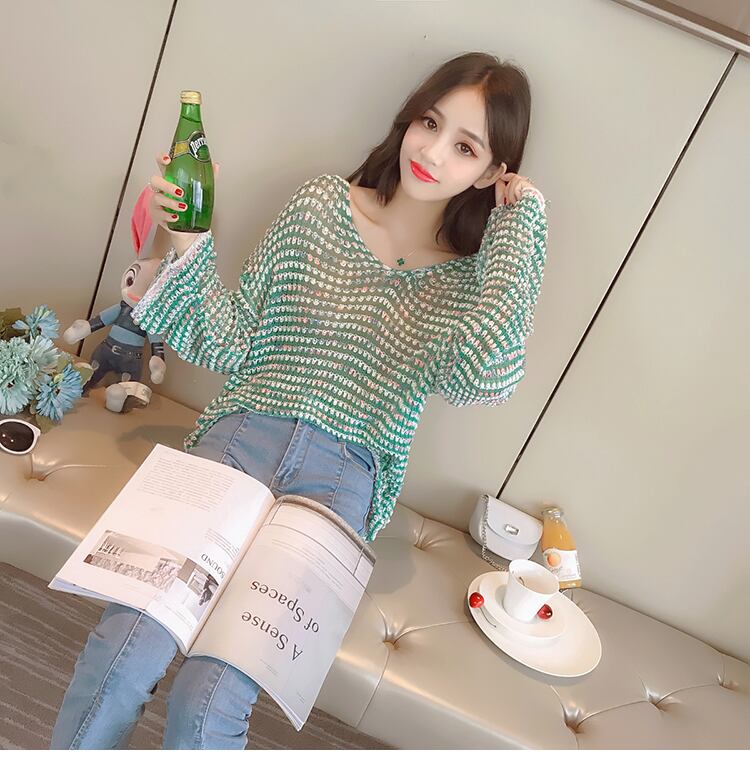 トップス レディース ニット セーター プルオーバー 長袖 トランペットスリーブ Vネック 透け感 かわいい 大人可愛い きれいめ シンプル カジュアル 大人 おしゃれ お洒落 こなれ感 ラブリー キュート 個性的 主役級 存在感 抜け感 ボーダー ストライプ 春 秋 冬 10代 20代 30代 40代 通勤 学生 通学 デート お出かけ 女子会 休日 着回し 普段使い 韓国 韓国系 送料無料 ファッション コーデ スタイル モテ 体型カバー トレンド 流行 フリーサイズ オレンジ グレー グリーン