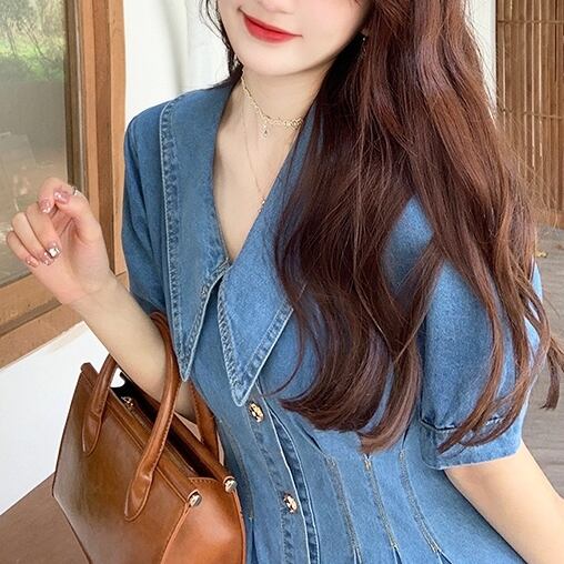 ワンピース レディース シャツワンピース デニムワンピース L XL 2XL 3XL 4XL 膝丈 ミディアム丈 半袖 襟付き Aライン 前開き デニム ブルーデニム かわいい 大人可愛い きれいめ シンプル カジュアル おしゃれ お洒落 ナチュラル こなれ感 ラブリー キュート レトロ ロマンチック 抜け感 送料無料 存在感 無地 学生 通学 デート お出かけ 女子会 休日 ブルー 春 夏 10代 20代 30代 韓国 韓国系 着回し 重ね着 ファッション コーデ モテ トレンド 流行 インスタ映え