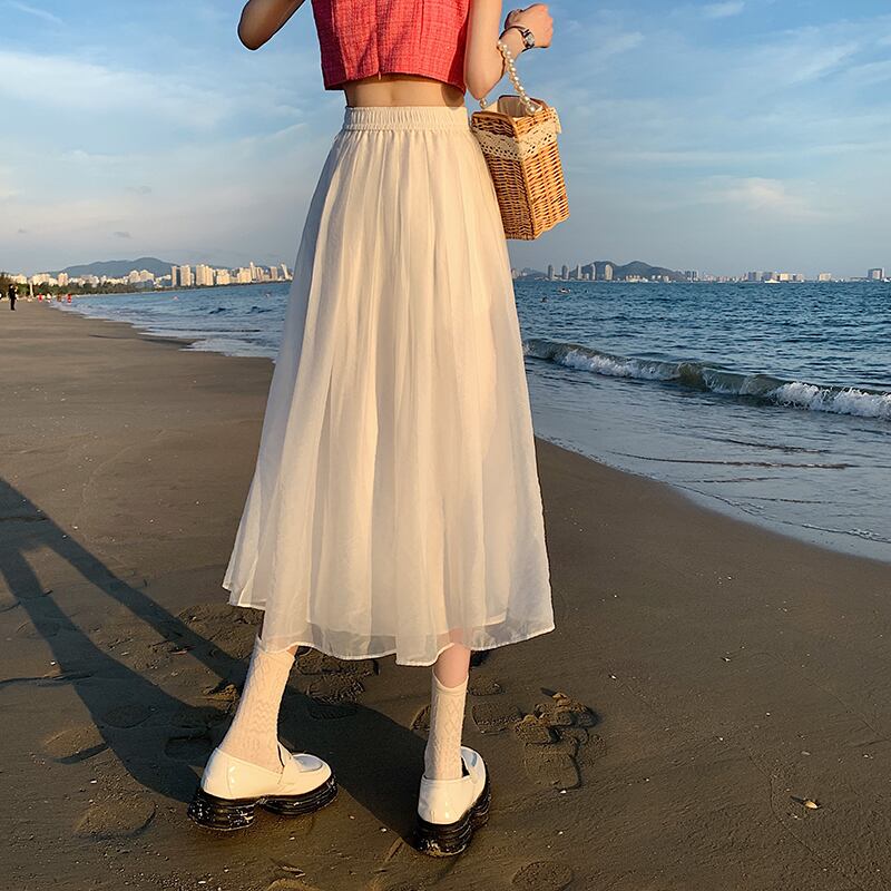 スカート レディース シフォンカート ロング ロング丈 ひざ下 Aライン ハイウエスト ウエストゴム 透け感 チュール かわいい 大人可愛い きれいめ シンプル 大人 上品 おしゃれ お洒落 送料無料 ラブリー キュート フェミニン 無地 ふんわり 春 夏 秋 10代 20代 30代 40代 オフィス ビジネス OL 通勤 学生 通学 デート 休日 着回し 普段使い 韓国 韓国系 ファッション コーデ スタイル モテ 体型カバー 美脚 脚長 フリーサイズ ブラック ホワイト グリーン ピンク プチプラ