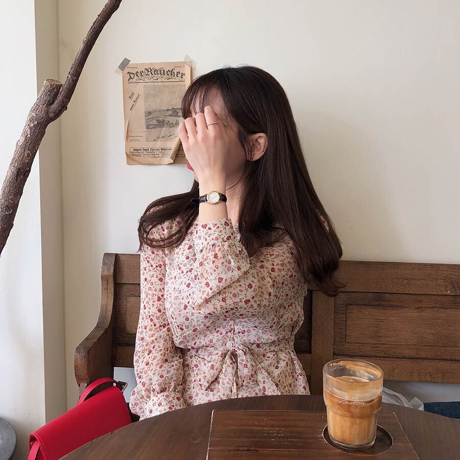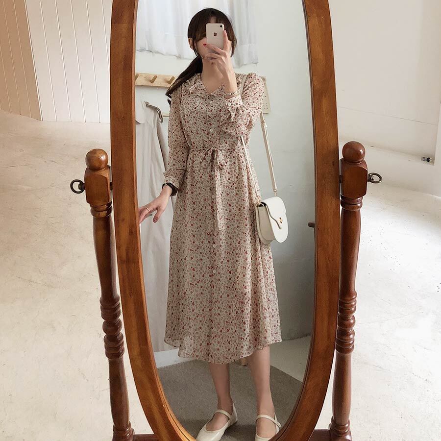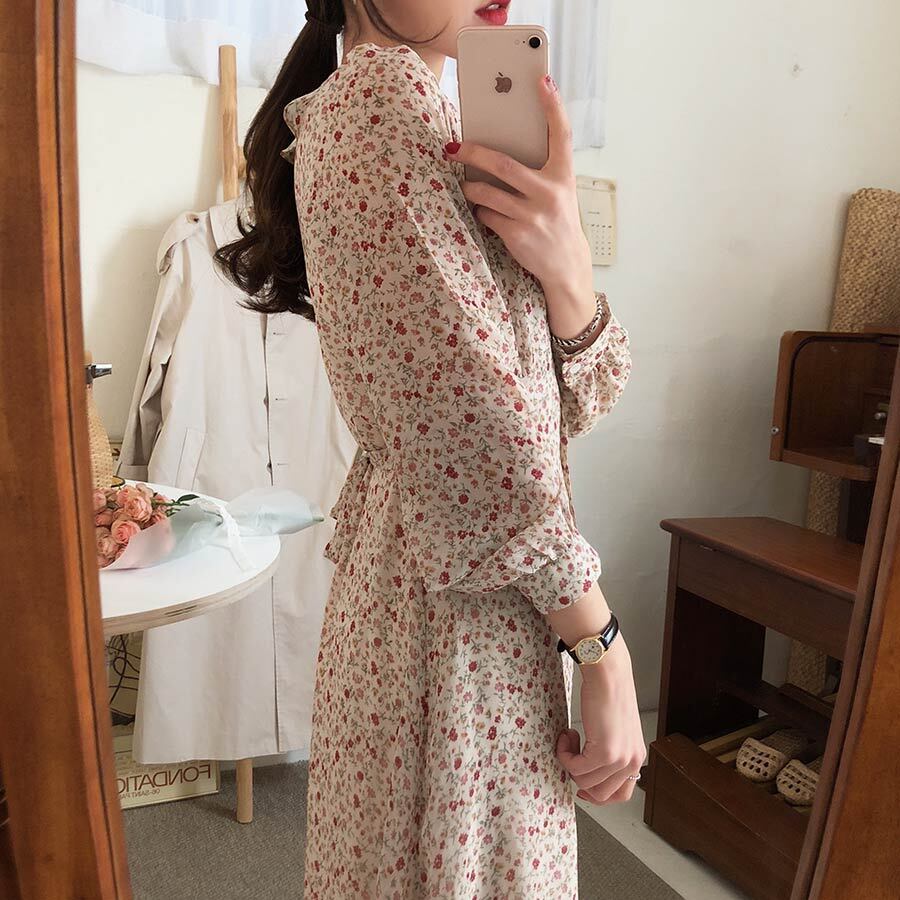 ワンピース レディース ひざ丈 膝下 ミモレ丈 袖あり 長袖 Vネック 襟付き ストレート フリル リボン ウエストマーク ウエストリボン かわいい 大人可愛い きれいめ カジュアル おしゃれ レトロ 大人女子 ラブリー キュート ガーリー 花柄 小花柄 フラワー 春 秋 10代 20代 30代 ママ 学生 通学 デート お出かけ 女子会 イベント リゾート 旅行 着回し お揃い 韓国 送料無料 ファッション コーデ S M L XL 大きいサイズ ビッグサイズ ピンク 白 ベージュ