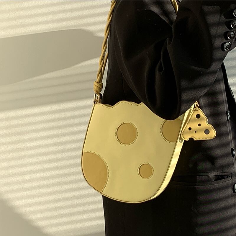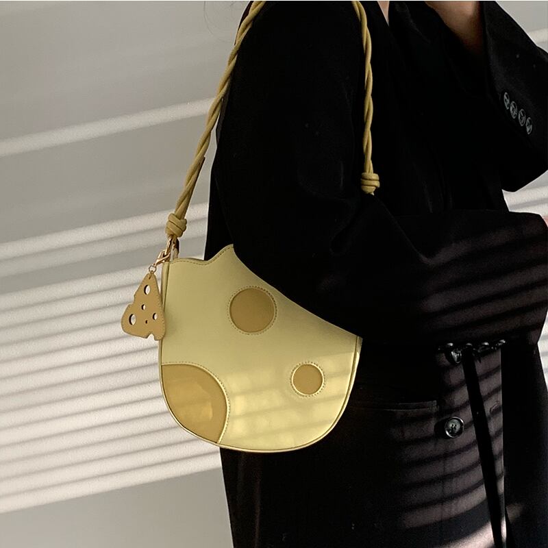 バッグ レディース 鞄 かばん ショルダーバッグ ハンドバッグ チーズ モチーフ チャーム 薄型 肩掛け かわいい 大人 可愛い カジュアル POP おしゃれ お洒落 個性的 キュート レトロ 食べ物 学生 お出かけ 休日 イベント 送料無料 公園 イエロー 黄色 春 夏 秋 冬 オールシーズン ハロウィン 10代 20代 30代 韓国 普段使い 定番 トレンド プレゼント ギフト おもしろ ファッション コーデ ユニーク