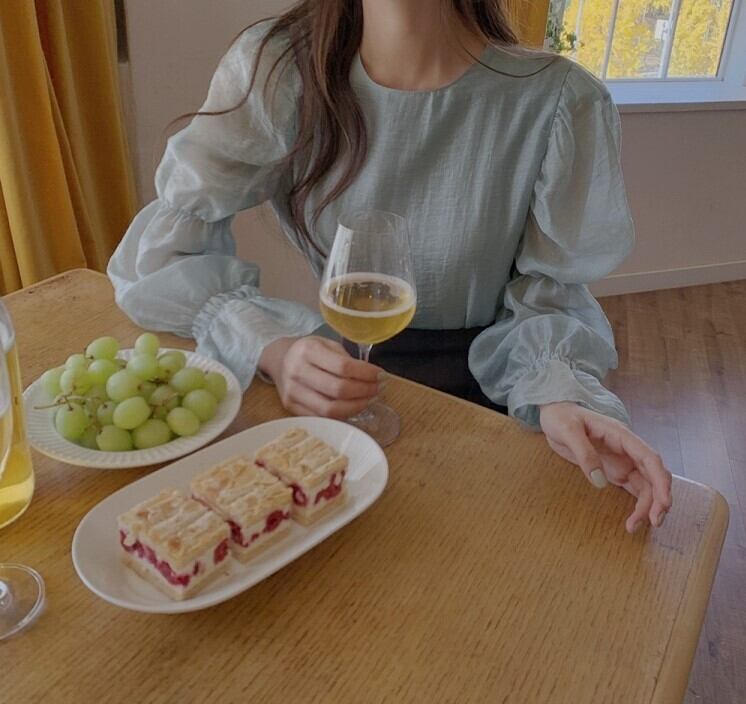 トップス レディース カットソー シャツ ブラウス 長袖 パフスリーブ フレアスリーブ ラウンドネック かわいい 大人可愛い きれいめ カジュアル 上品 エレガント 清楚 フェミニン おしゃれ お洒落 お嬢様 ナチュラル 送料無料 ラブリー キュート ガーリー ロマンチック 抜け感 無地 OL 通勤 学生 通学 デート お出かけ 女子会 休日 S M L XL ベージュ ブルー 春 20代 30代 40代 韓国 韓国系 着回し 普段使い 体型カバー ファッション コーデ プチプラ トレンド
