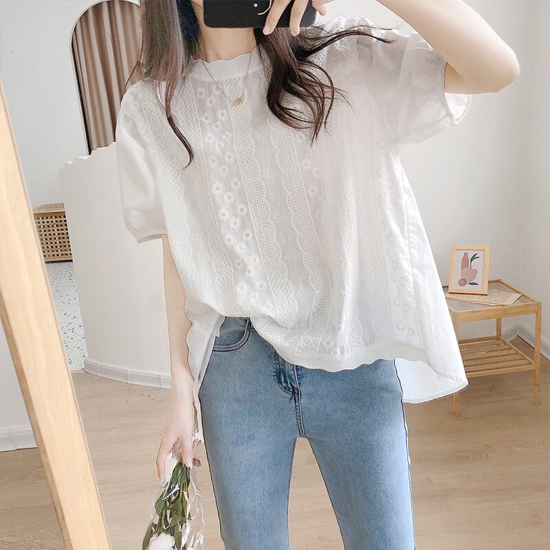 トップス レディース シャツ ブラウス M L XL 2XL 半袖 刺繍 かわいい 大人可愛い きれいめ 上品 エレガント 清楚 フェミニン おしゃれ お洒落 綺麗 お嬢様 こなれ感 ラブリー キュート ガーリー ロマンチック レトロ 抜け感 送料無料 存在感 無地 OL 通勤 学生 通学 デート お出かけ 女子会 休日 ホワイト ブラック 春 夏 10代 20代 30代 韓国 韓国系 着回し 普段使い 重ね着 ギフト プレゼント ファッション コーデ プチプラ モテ トレンド 流行 インスタ映え